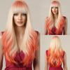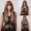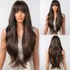 ALAN EATON Brown Highlight Layered Boby Wavy Wig Long Natural Mixed Synthetic Wig Women Daily Hair with Bangs Heat Resistant Wig