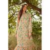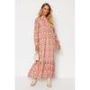 Orange Floral Half Collar Skirt Frilly Wide Fit Dress