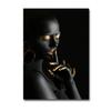 Modern Home Furnishing Black Skin Women Gold Makeup Shape Oil Painting Wall Art Poster Print Bedroom Living Room