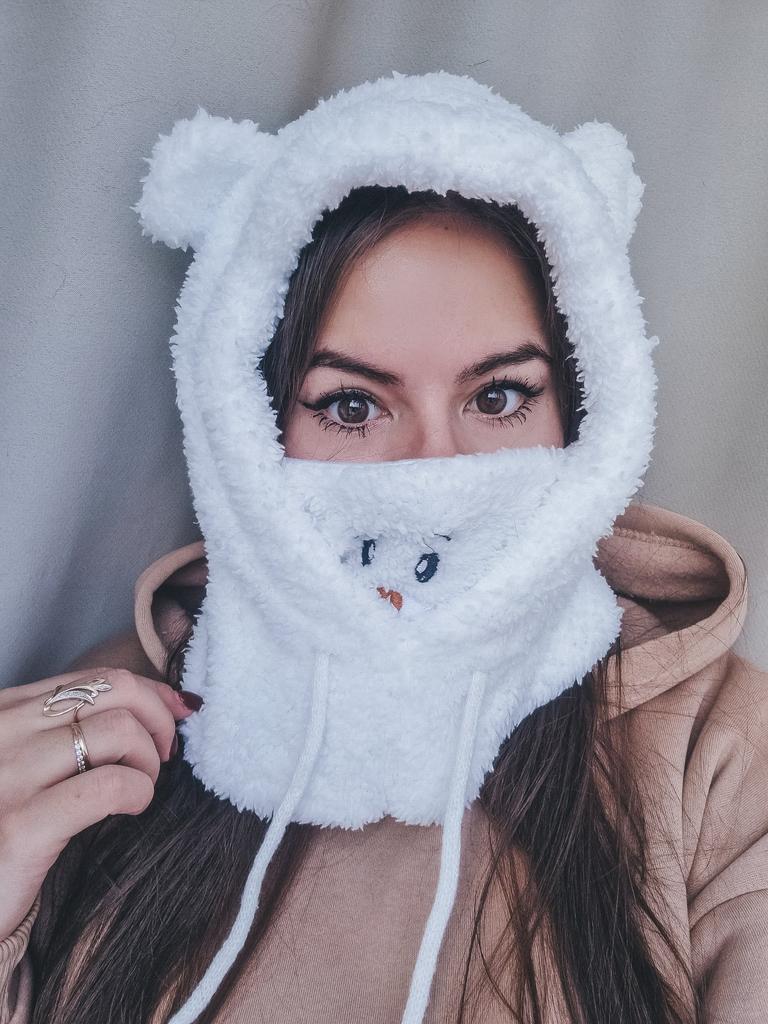 Women Autumn Winter Thickened Lamb Fleece Hat Cycling Warm Ear Protection Cute Hat Versatile Mask Scarf Hat Neck