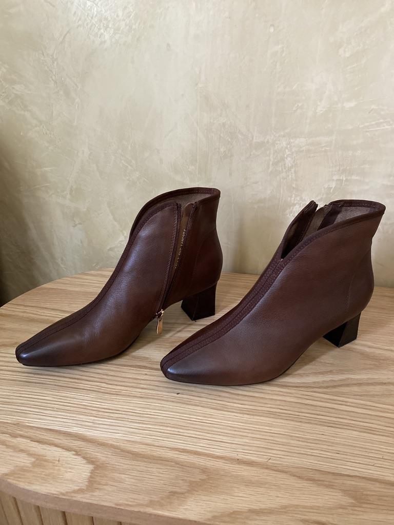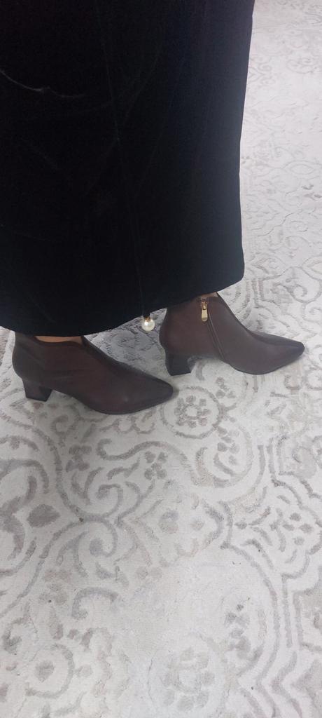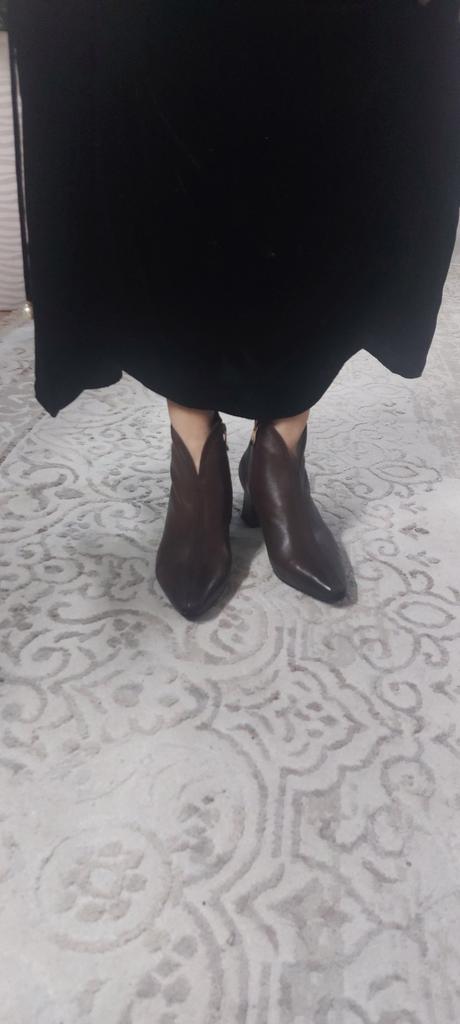 Ankle boots as in the picture, but very small, definitely need to buy a size or even 2 bigger. I barely pulled them on my 35.5, fortunately the leather is thin and soft enough, I hope it will stretch on the leg and the leather will not burst.