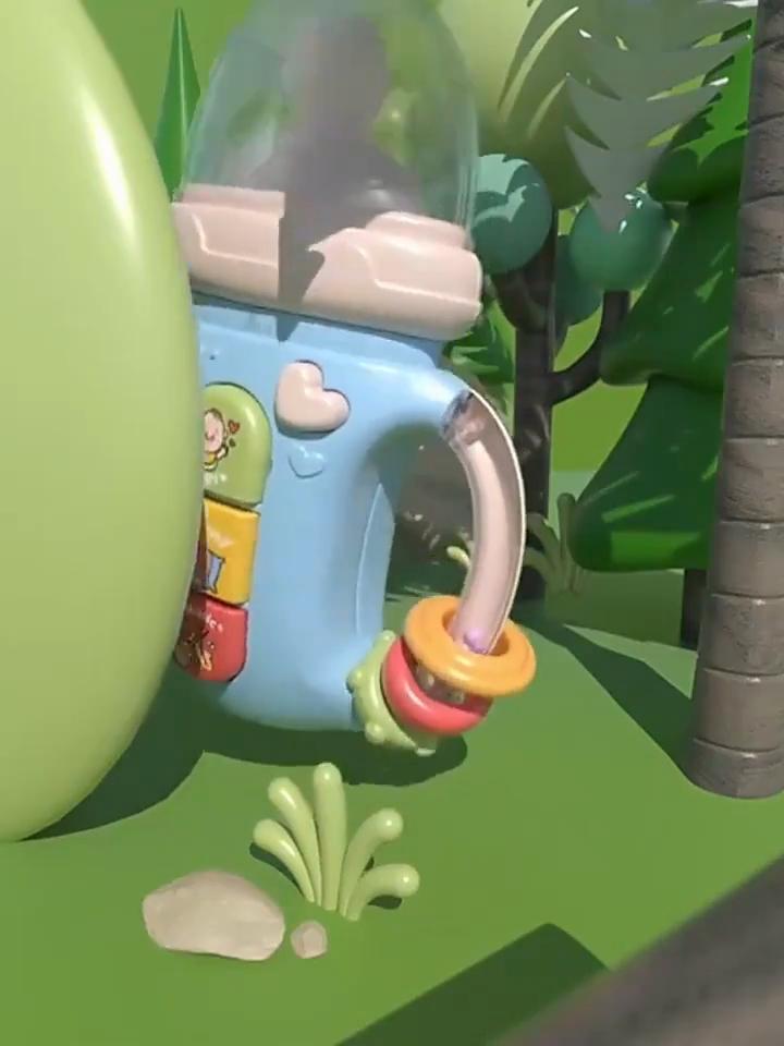 The bottle doesn't work, it's an imitation, but the nipple lights up and the buttons make sounds. The nipple is silicone, you can chew it.