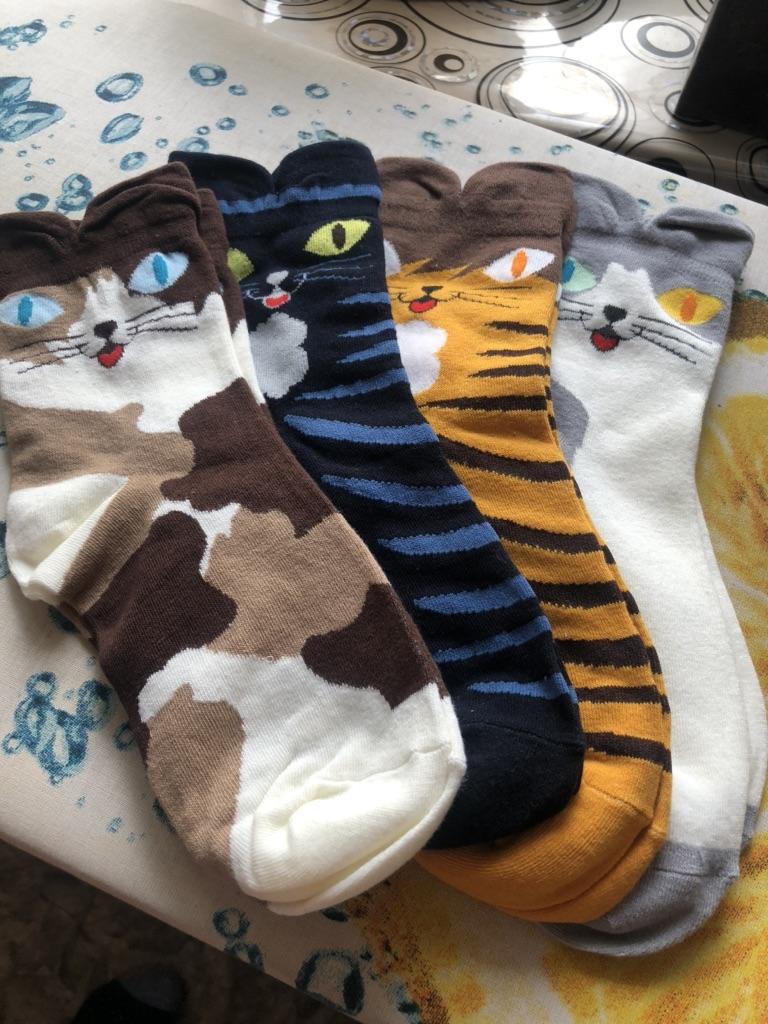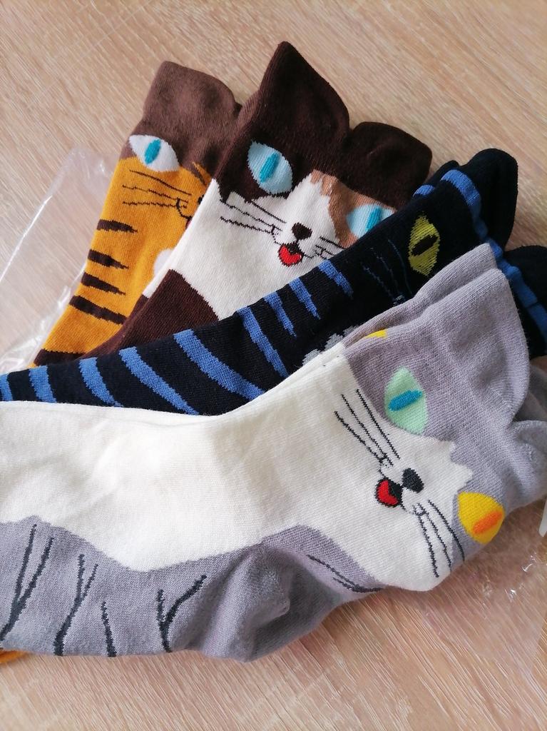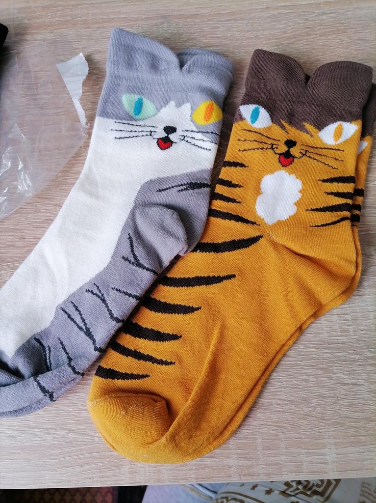 Cute socks with cats 😻🐈⬛ My wardrobe is usually basic and consists of solid colors, but I love creative socks. My foot size is 38.5 and this sock model fit me perfectly. 。The material from which these socks are made is pleasant to the skin. 。The socks are well stitched and there are no additional threads. 。There is no unpleasant odor. 💔If the seller makes 7 models, then you can choose “what kind of cat are you today”?! ♥️I liked that the socks have a comfortable asymmetrical elastic band, which complements the look and does not cause discomfort to the legs. 👌I recommend these socks to teens and young adults for a unique and cute look depending on their mood. Be it a playful ginger cat or a serious black cat.