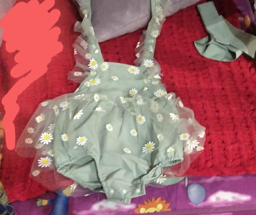 Baby Girl 2Pcs Summer Outfits, Ruffle Sleeve Daisy Print Romper Mesh Dress with Headband Set