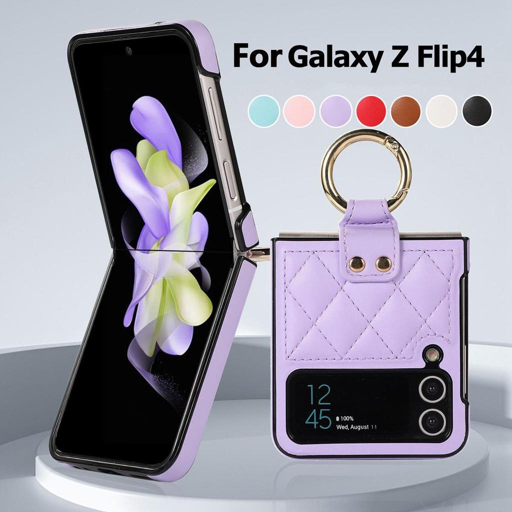 Luxury Leather Case for Samsung Galaxy Z Flip 4 Armor Ring Band Phone Case for Samsung Galaxy Z Flip 4 Z 5G Case Shockproof Protective Case
