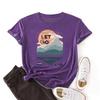 LingMeng Casual Fashion Creative Summer Sunrise Women's T-shirt Sunset Print Pattern Round Neck Loose Women's Tops Enjoy Life