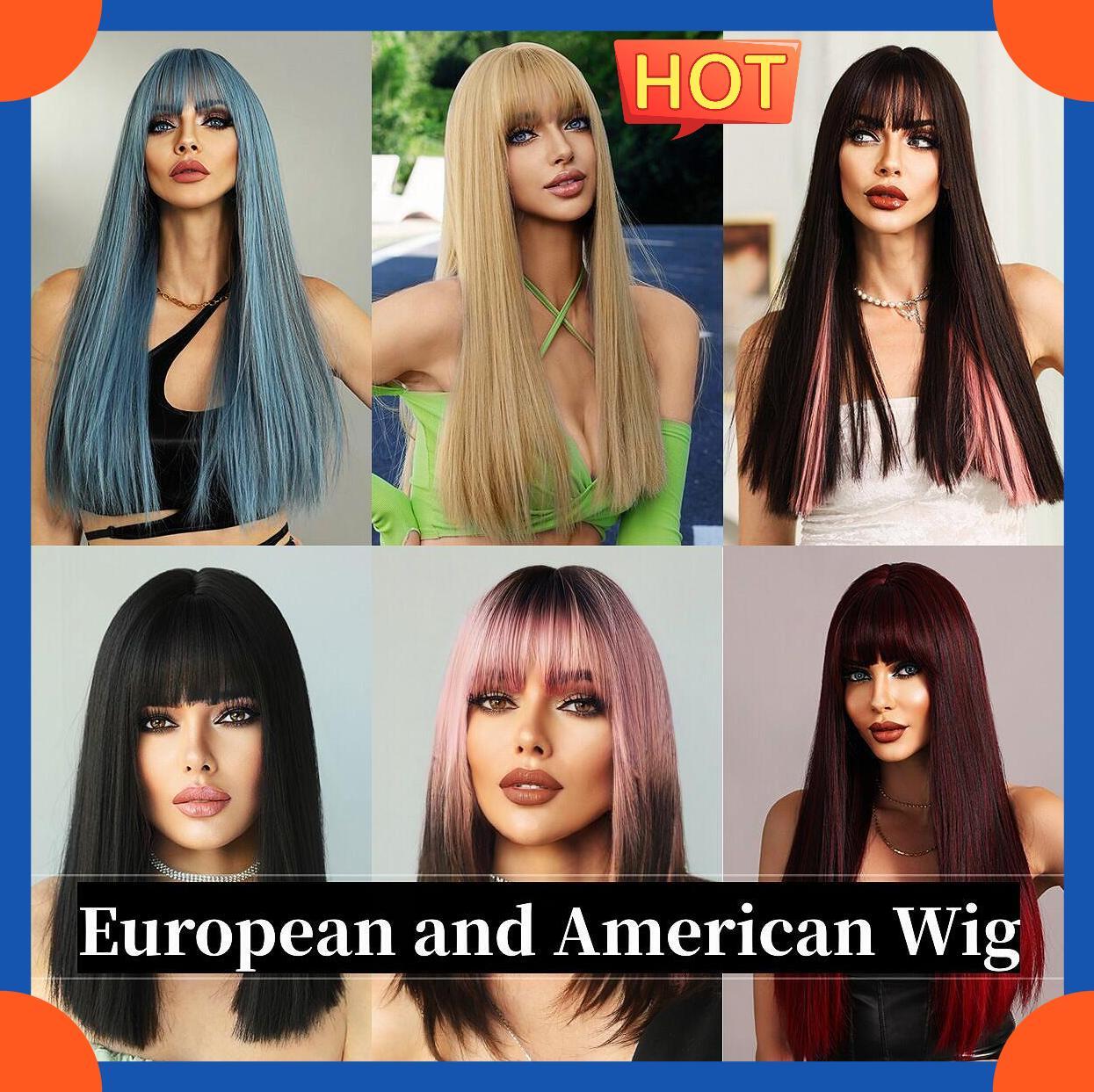 Popular Long Wig for Women Synthetic Wig with Bangs Hair Headgear