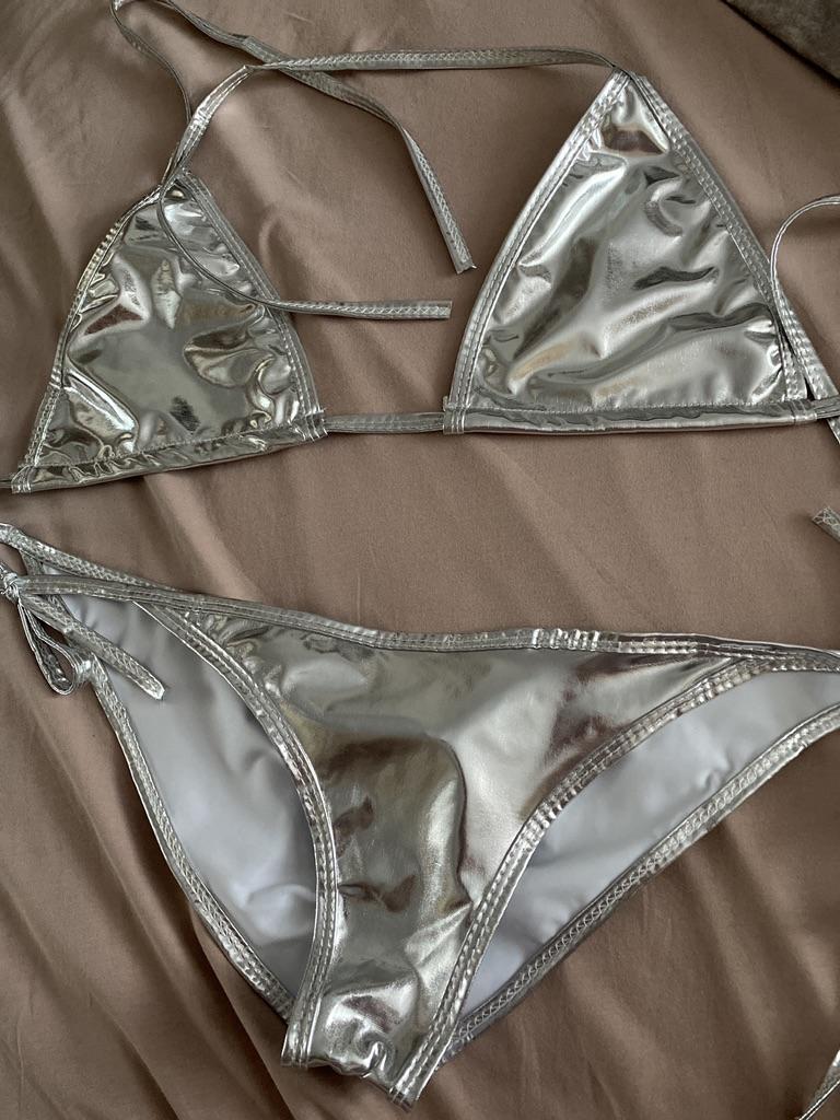 Women's Liquid Metallic Halter Bikini Sets Sliding Swimsuit 2 Piece Sexy Bikinis