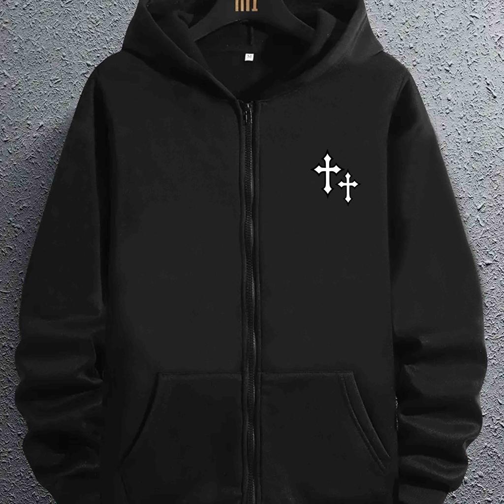 Stylish Christian Cross Print Men's Hooded Jacket Spring & Fall Sports Sweatshirt