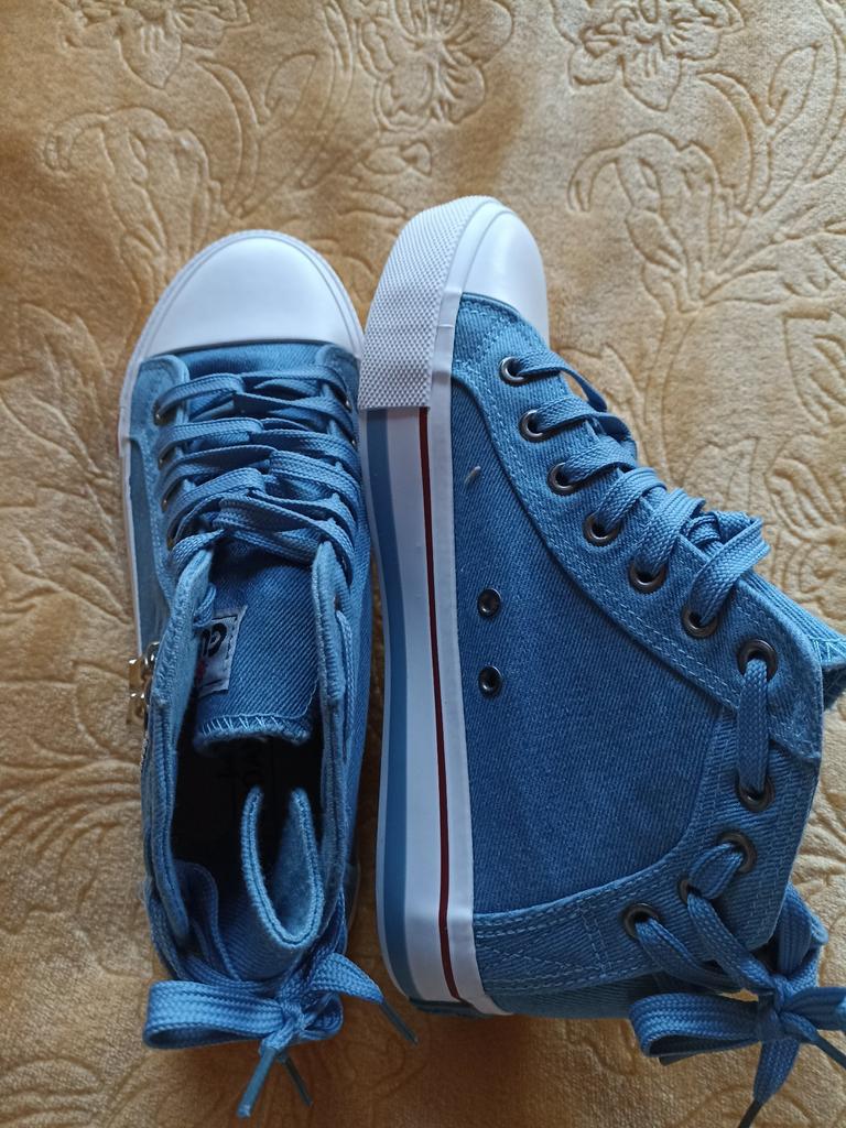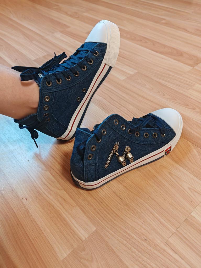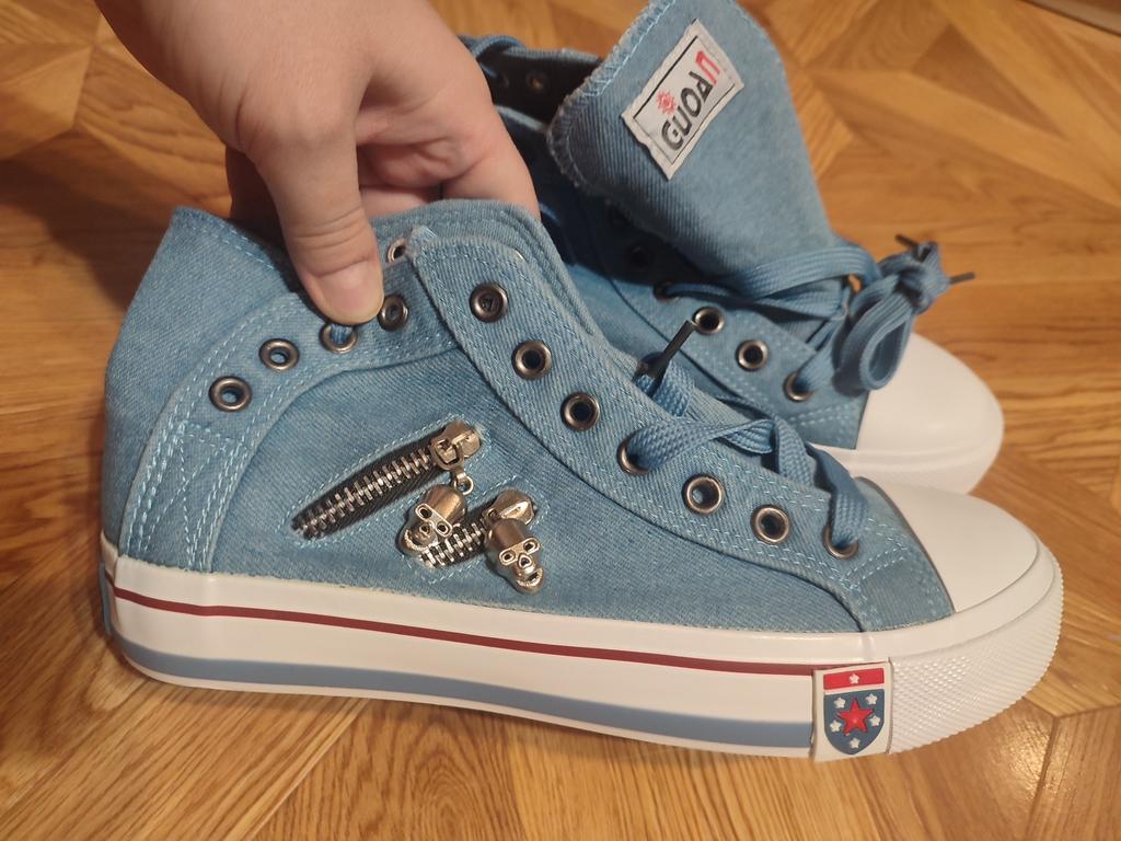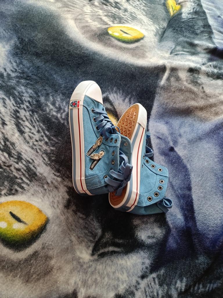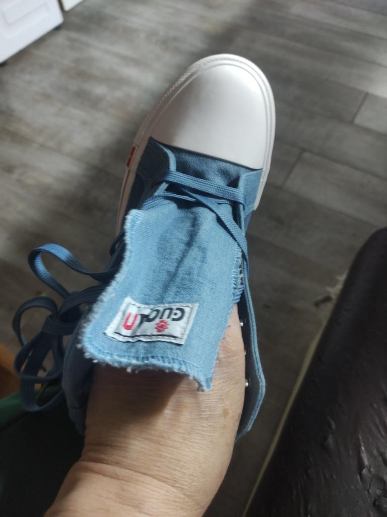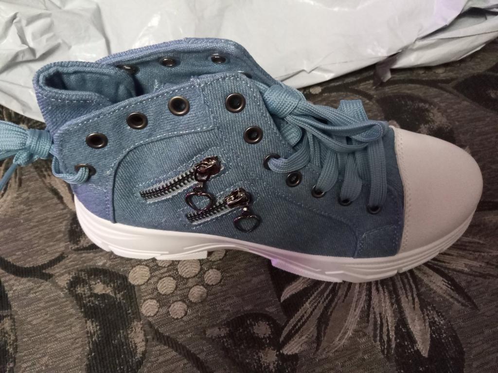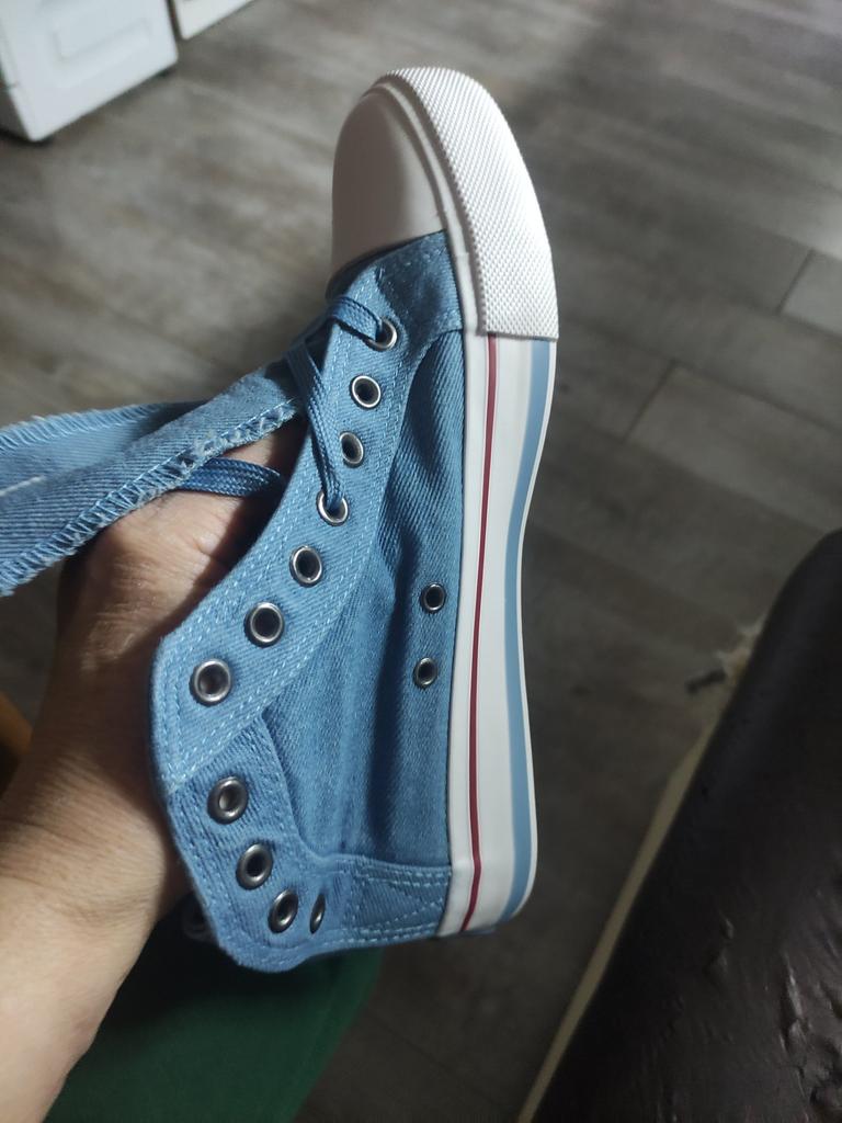 A pair of denim sneakers. I'm ok. Thank you JOOM. Basketball looks exactly like in the photo. I haven't worn them yet because it's cold. I will definitely wear it in the spring. I had another pair and loved them. Thanks JOOM!