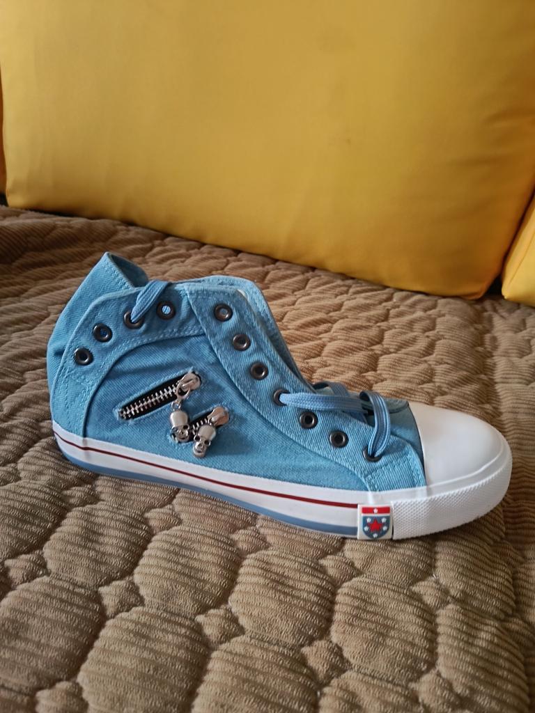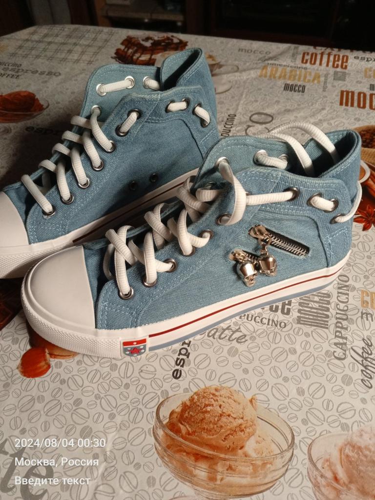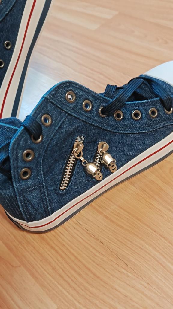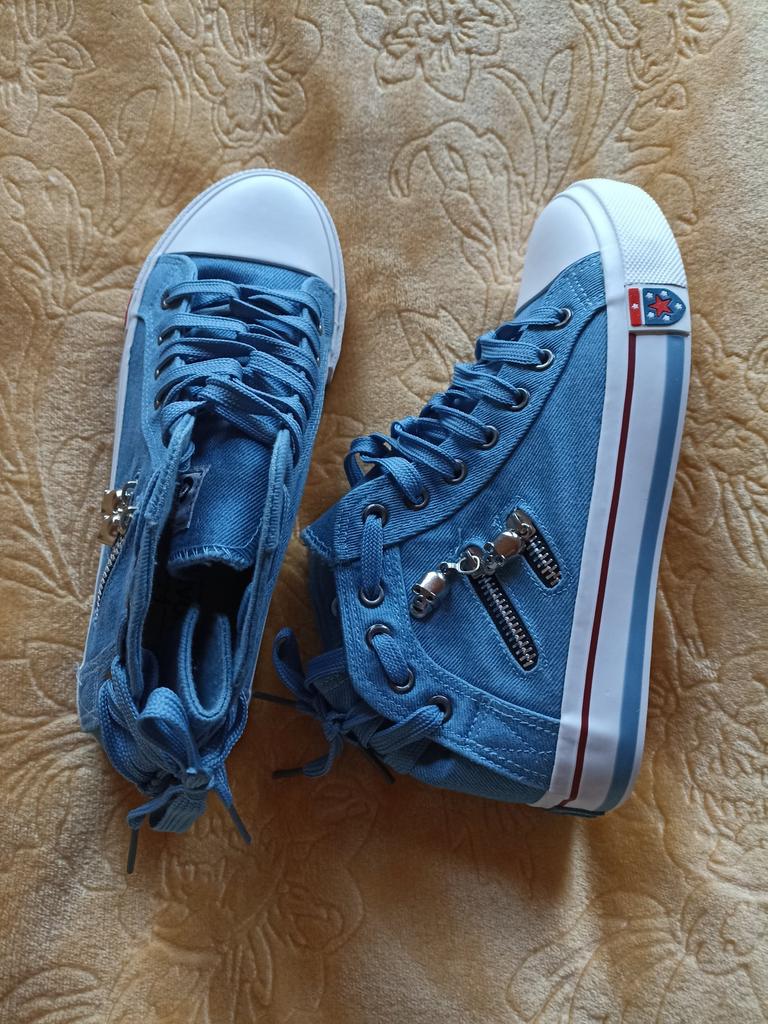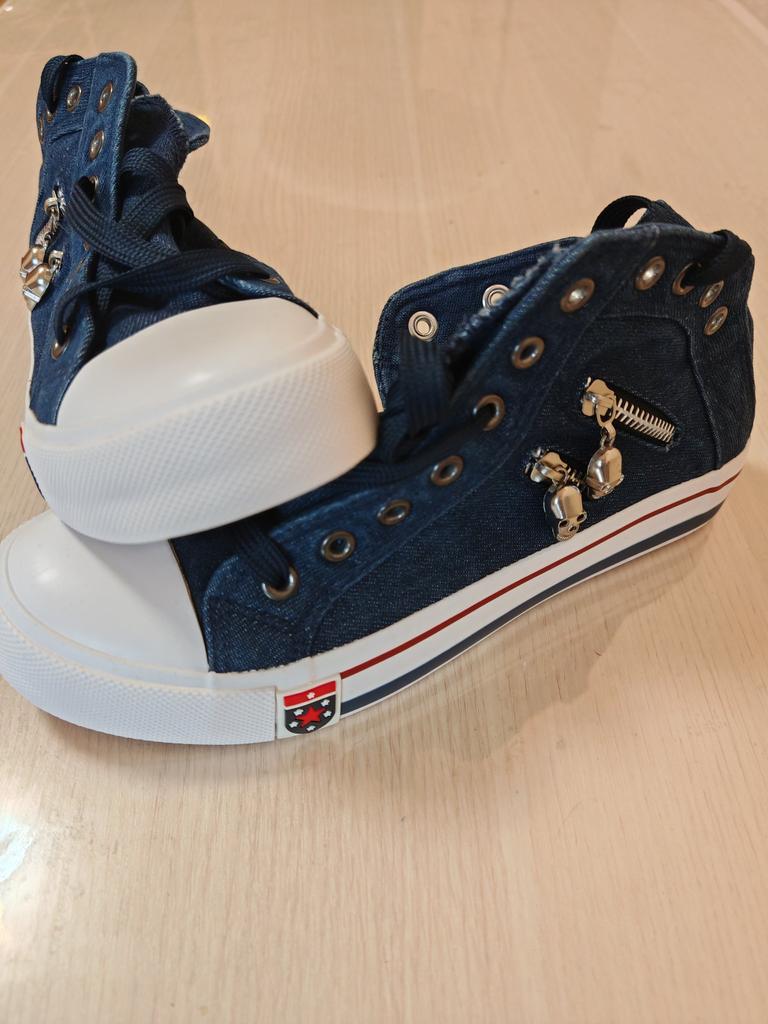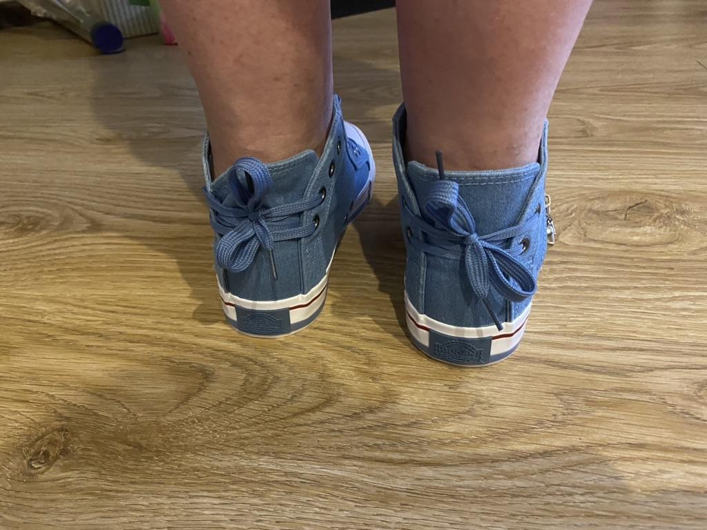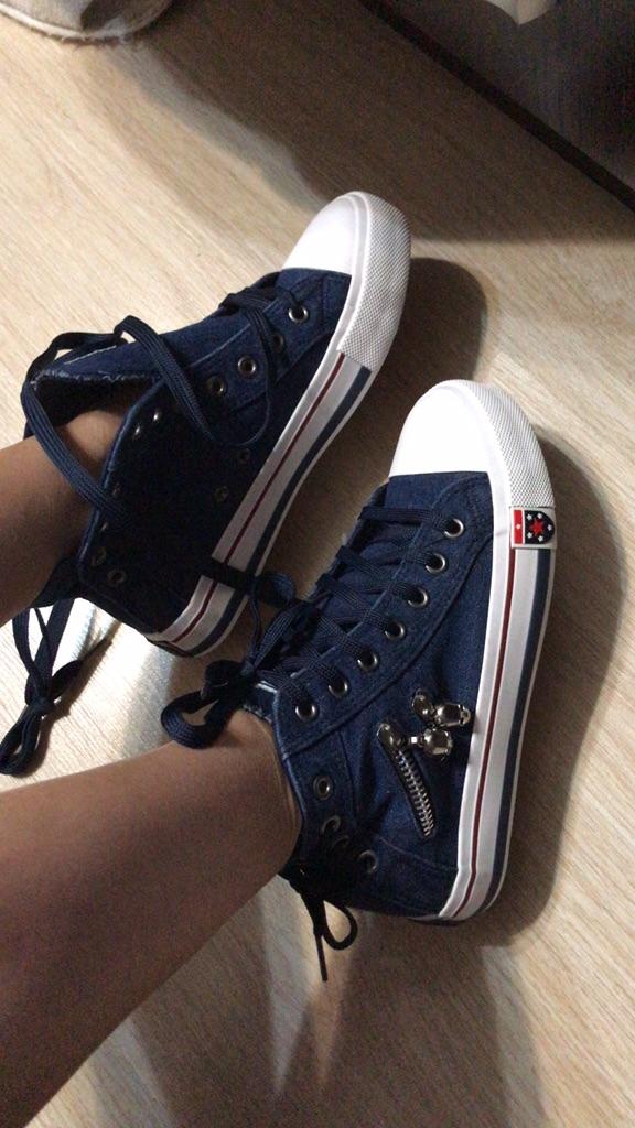 A pair of denim sneakers. I'm ok. Thank you JOOM. Basketball looks exactly like in the photo. I haven't worn them yet because it's cold. I will definitely wear it in the spring. I had another pair and loved them. Thanks JOOM!