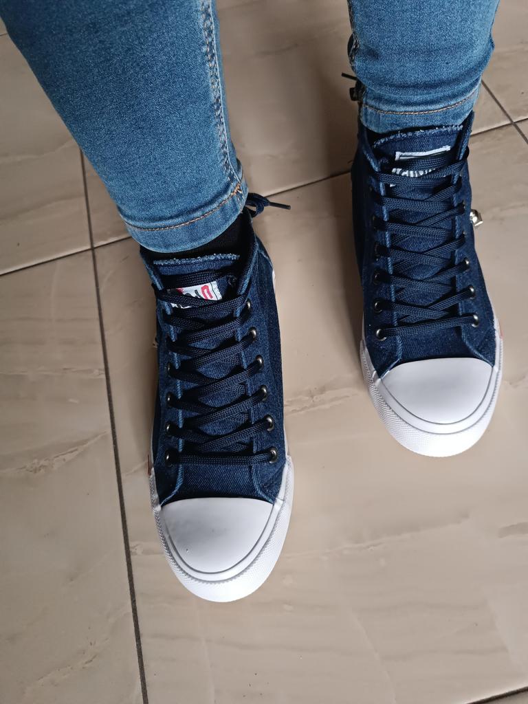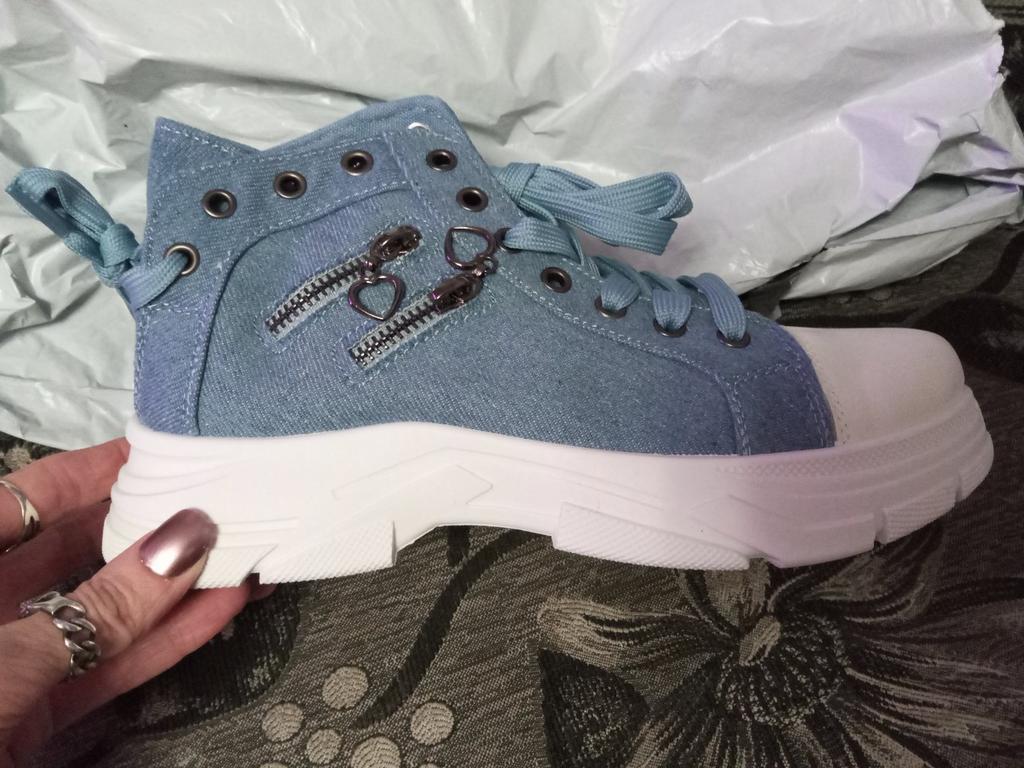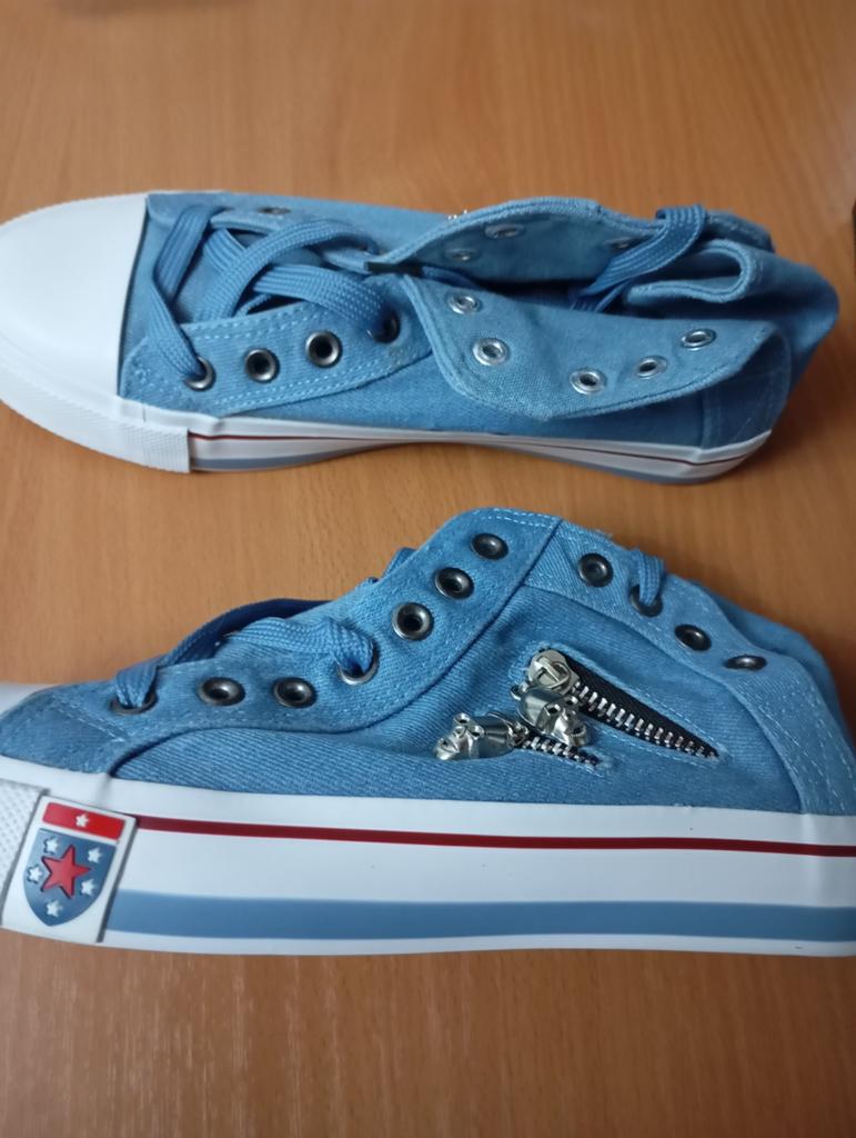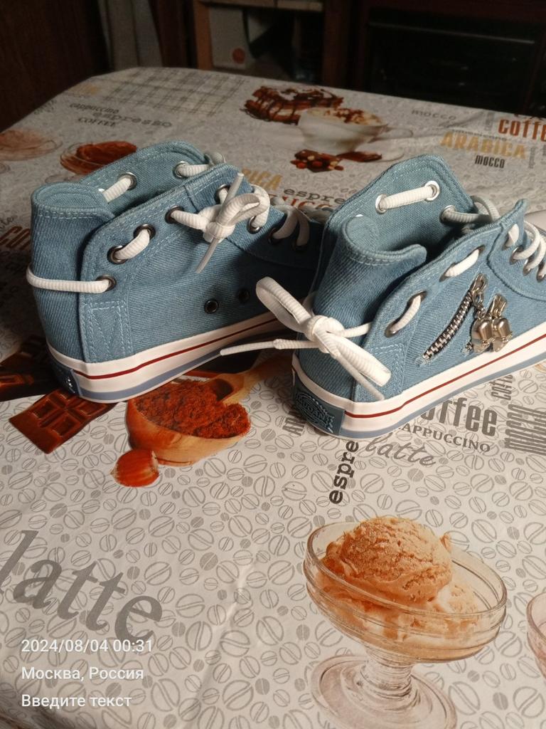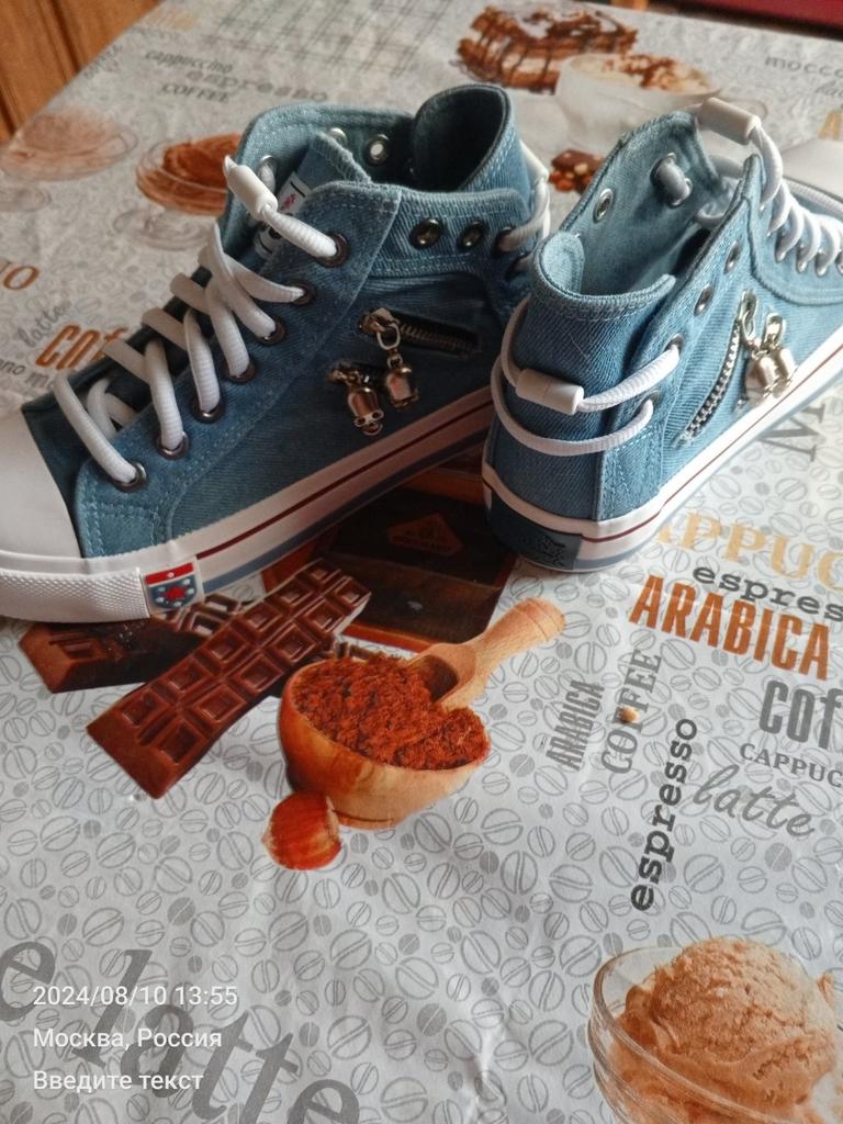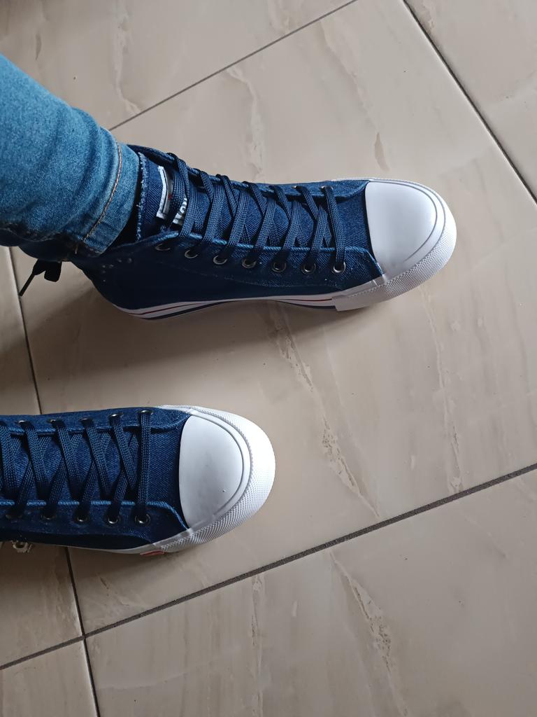 A pair of denim sneakers. I'm ok. Thank you JOOM. Basketball looks exactly like in the photo. I haven't worn them yet because it's cold. I will definitely wear it in the spring. I had another pair and loved them. Thanks JOOM!