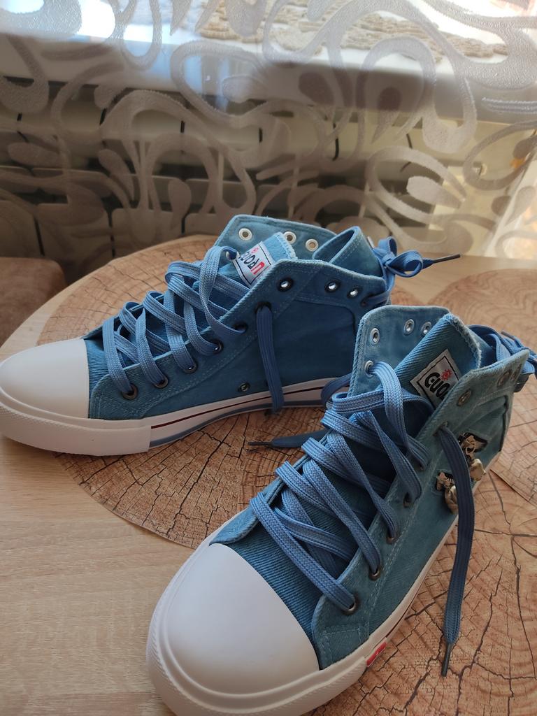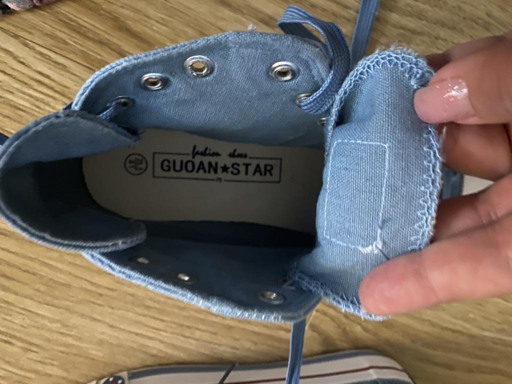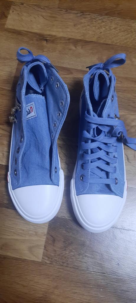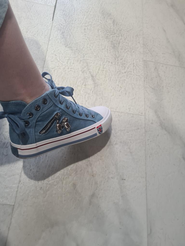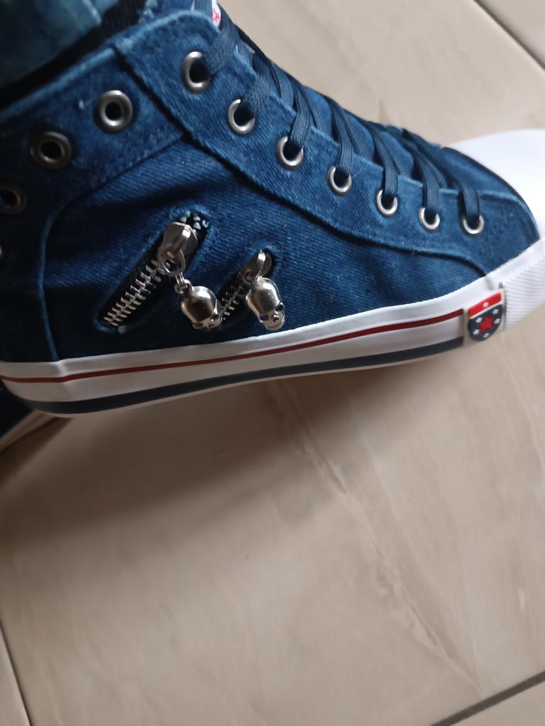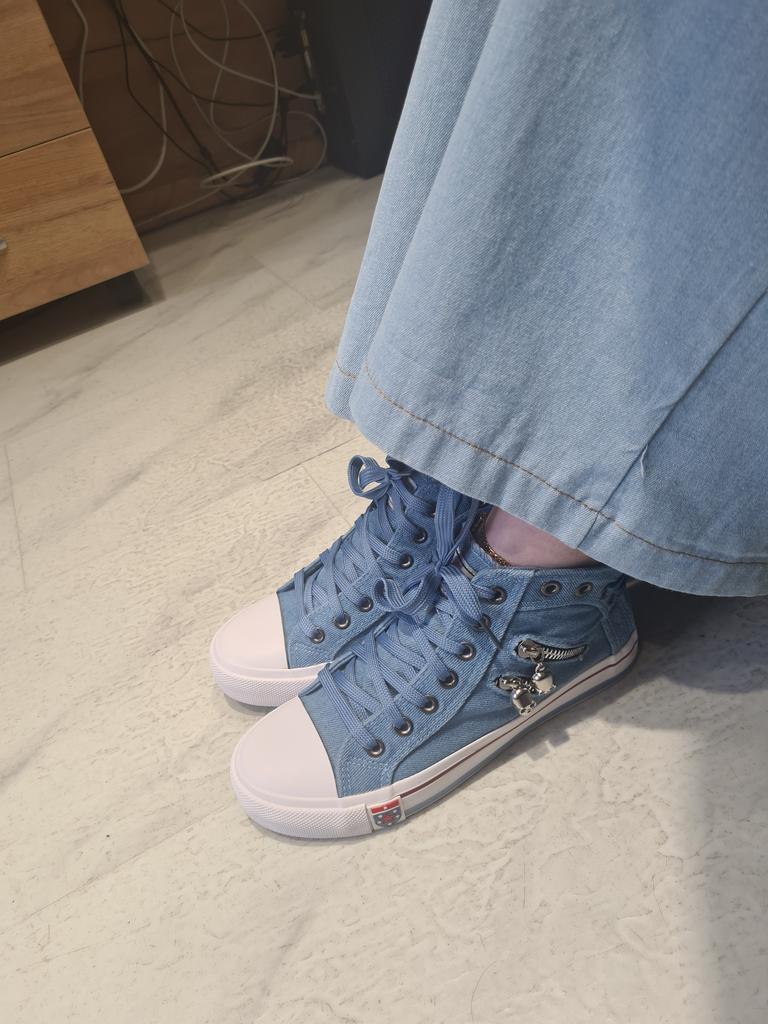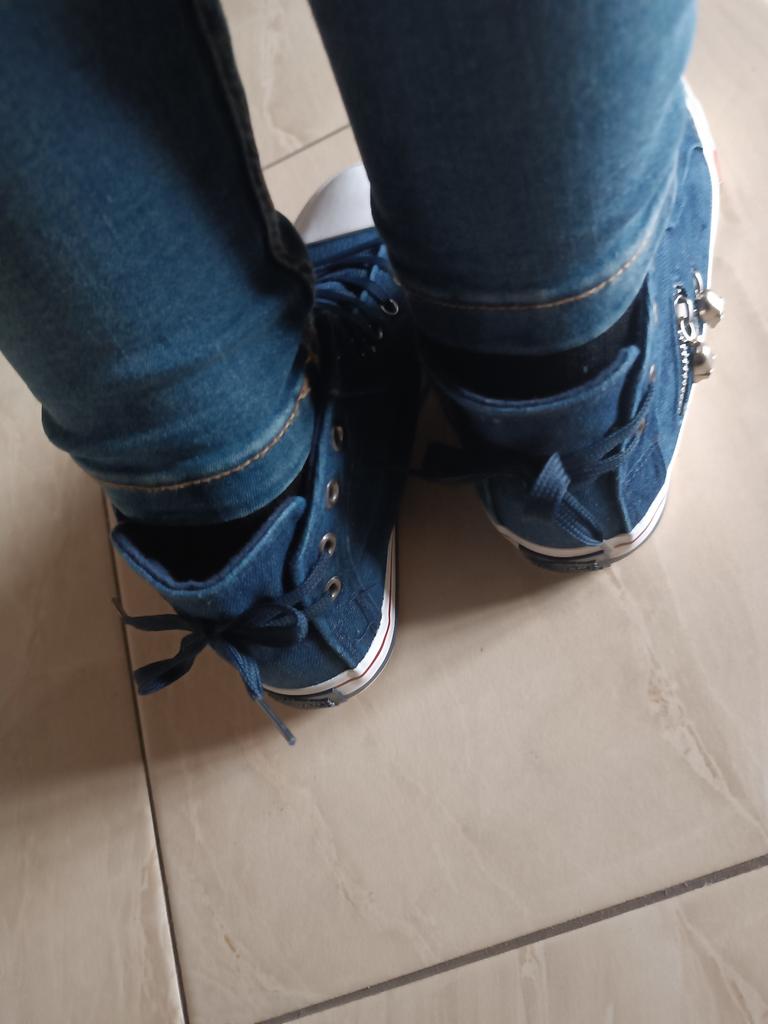 A pair of denim sneakers. I'm ok. Thank you JOOM. Basketball looks exactly like in the photo. I haven't worn them yet because it's cold. I will definitely wear it in the spring. I had another pair and loved them. Thanks JOOM!