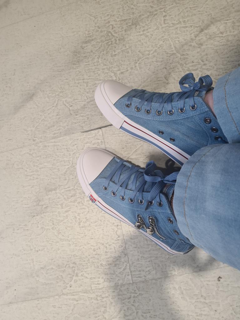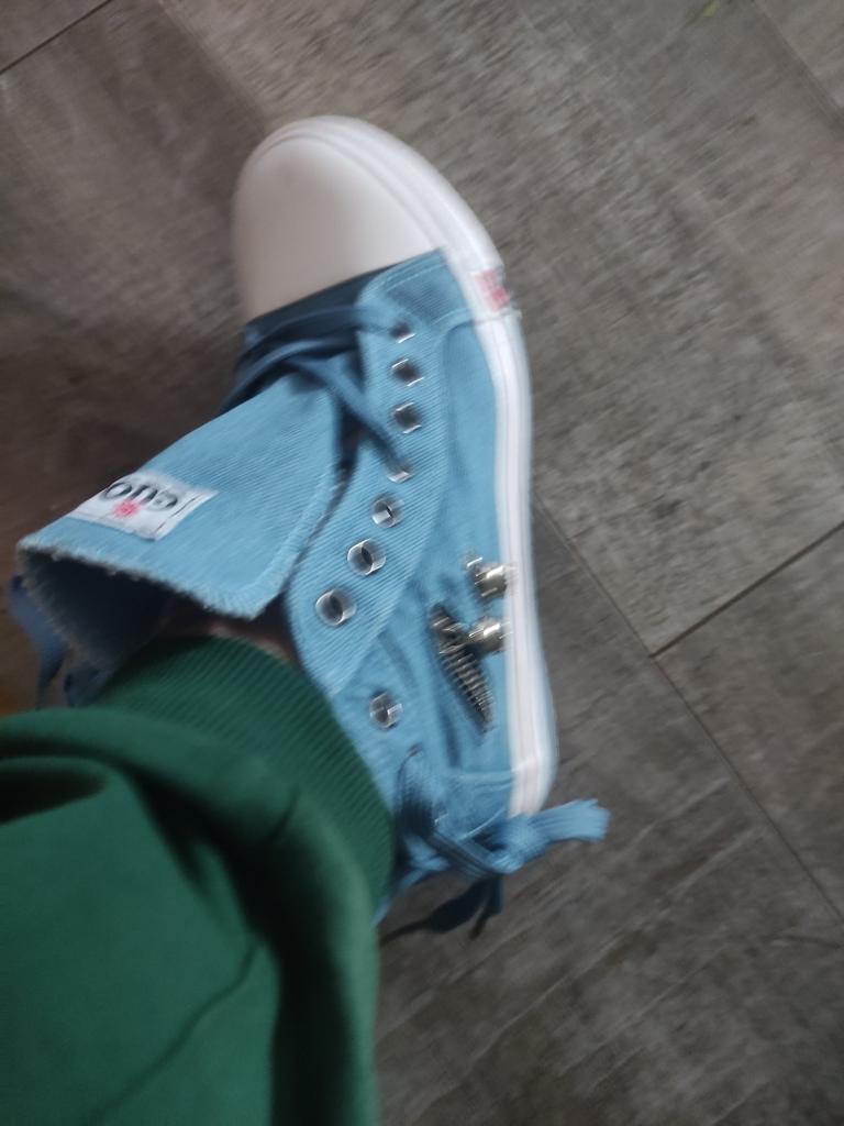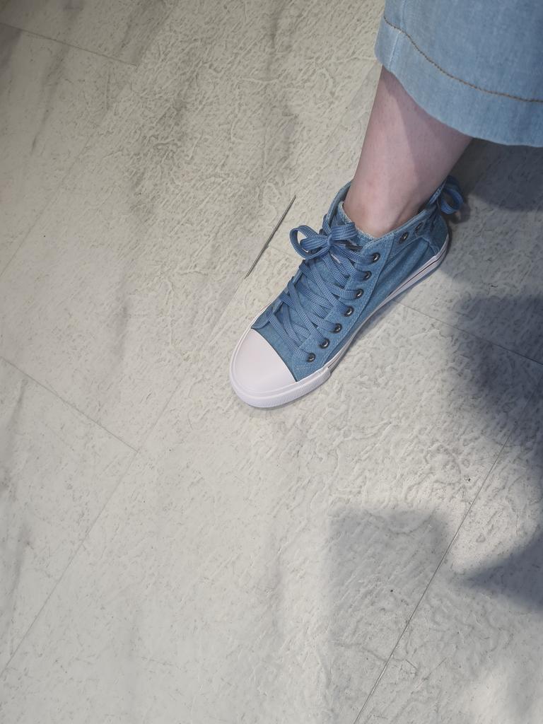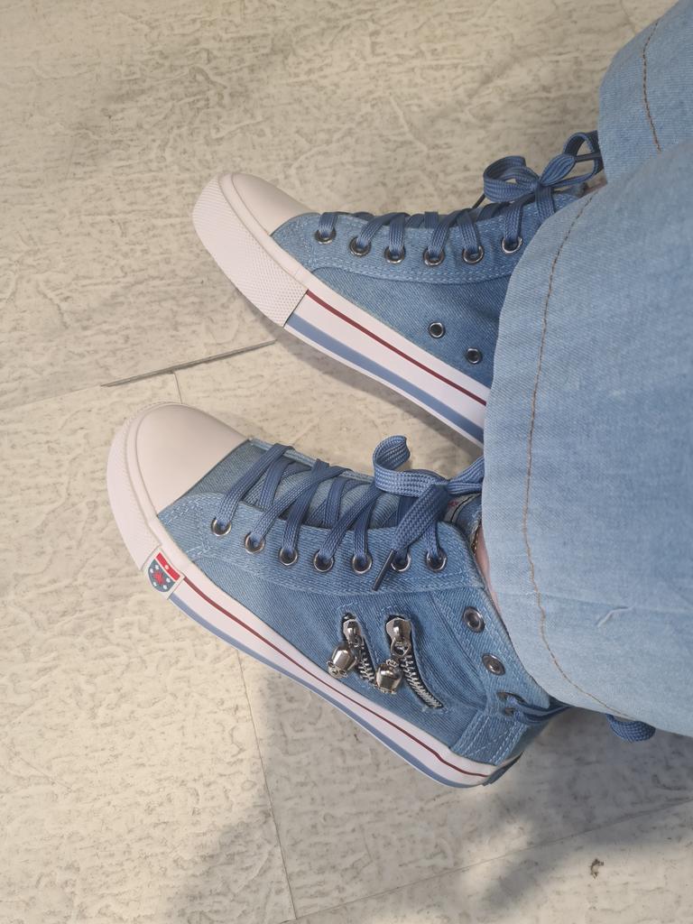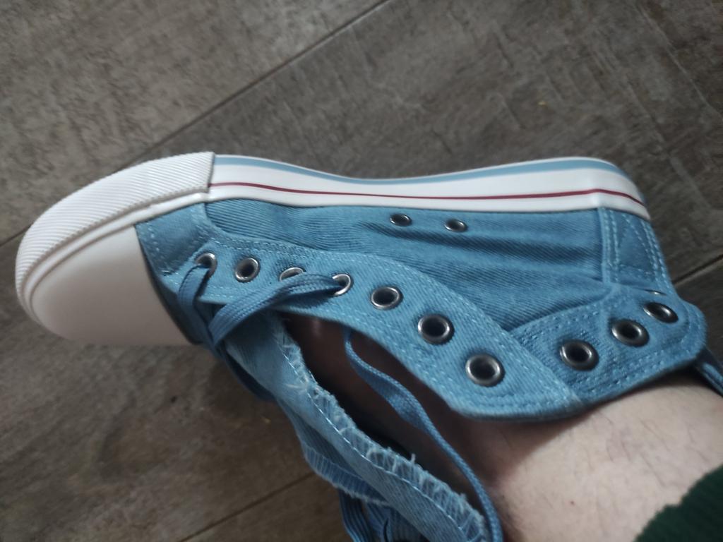 I thought they would be more "denim" but they are just blue. But the biggest disappointment is not this. The shoes look like sneakers in the photo, but the white insert on the toe is made of hard plastic. You can't break these in. These shoes are for a very narrow foot. It's a pity. I was so looking forward to these sneakers.