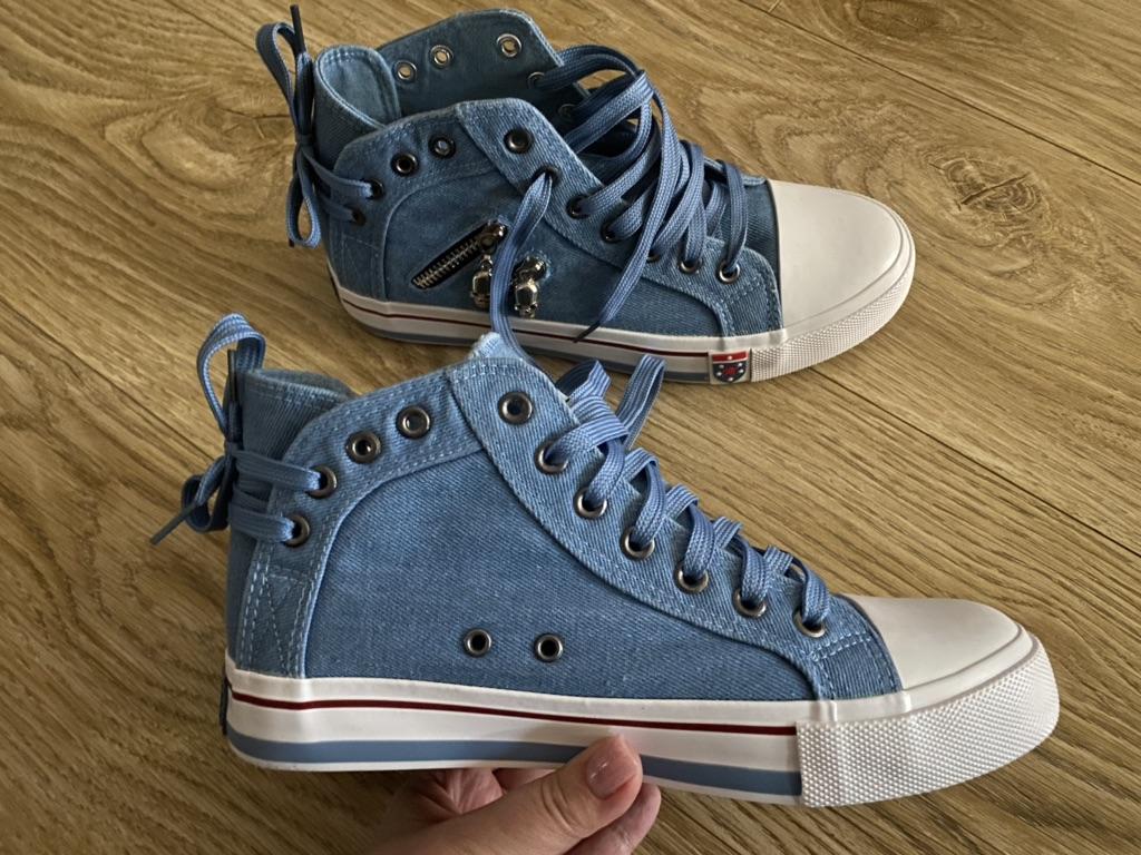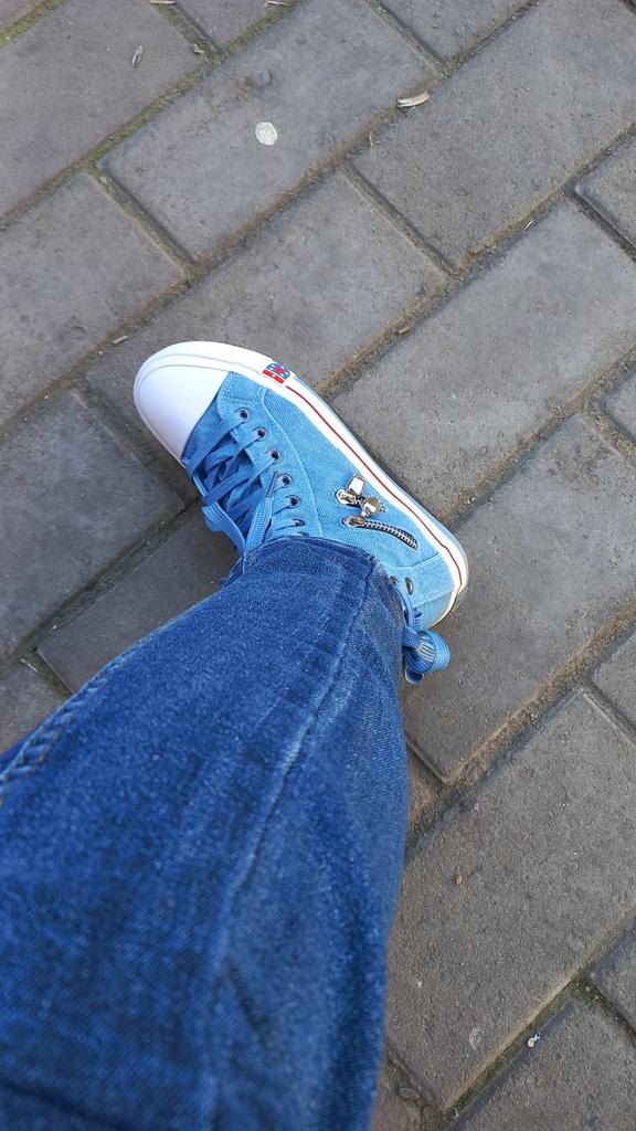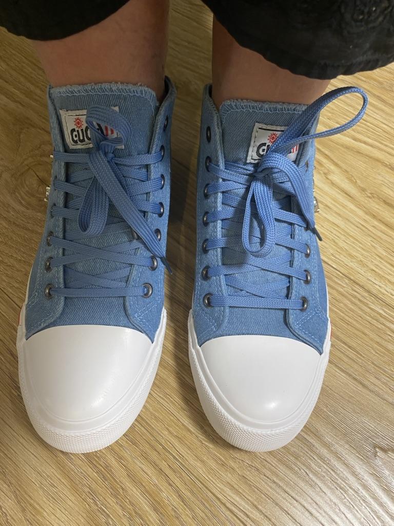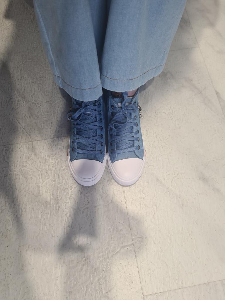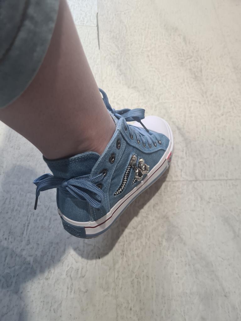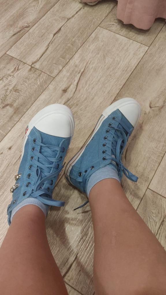 I thought they would be more "denim" but they are just blue. But the biggest disappointment is not this. The shoes look like sneakers in the photo, but the white insert on the toe is made of hard plastic. You can't break these in. These shoes are for a very narrow foot. It's a pity. I was so looking forward to these sneakers.