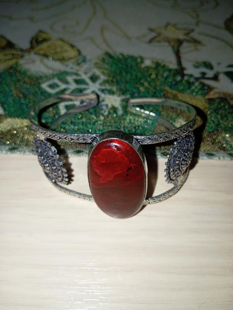 Red Labradorite Gemstone Handmade 925 Sterling Silver Bangle Adjustable Jewelry