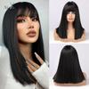 Short Black Synthetic Wigs with Bangs Straight Bob Hairstyle Cosplay/Lolita/Daily Wear Heat Resisitant Hair Wigs for Women Afro