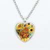 Fashion Van Gogh Art Starry Night Sunflower Necklace Glass Cabochon Painting Heart Pendant Printed Photo Necklaces