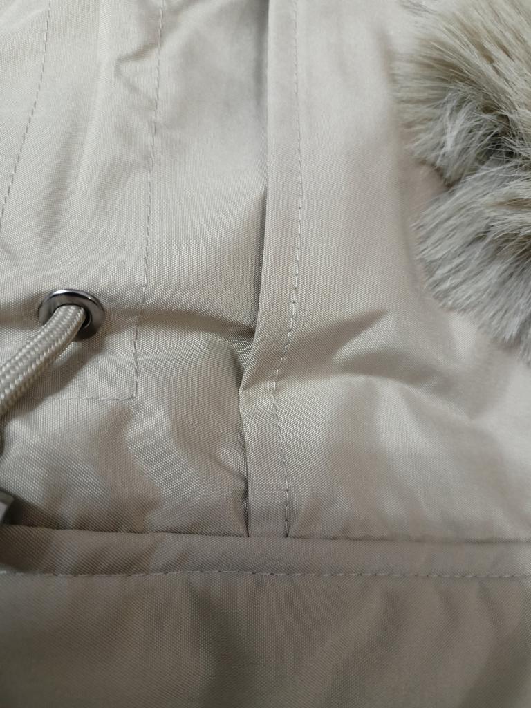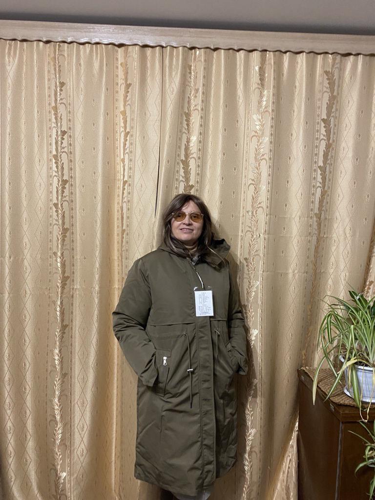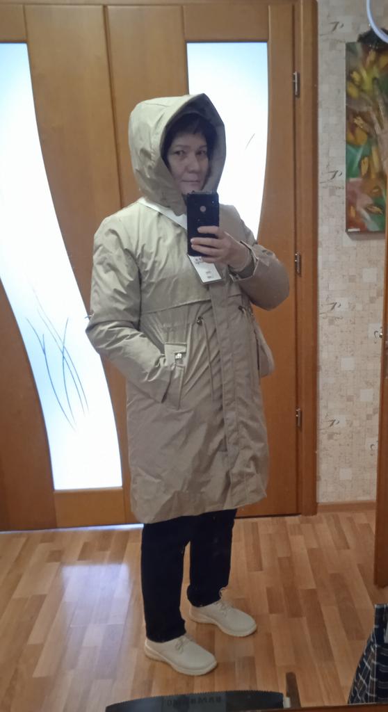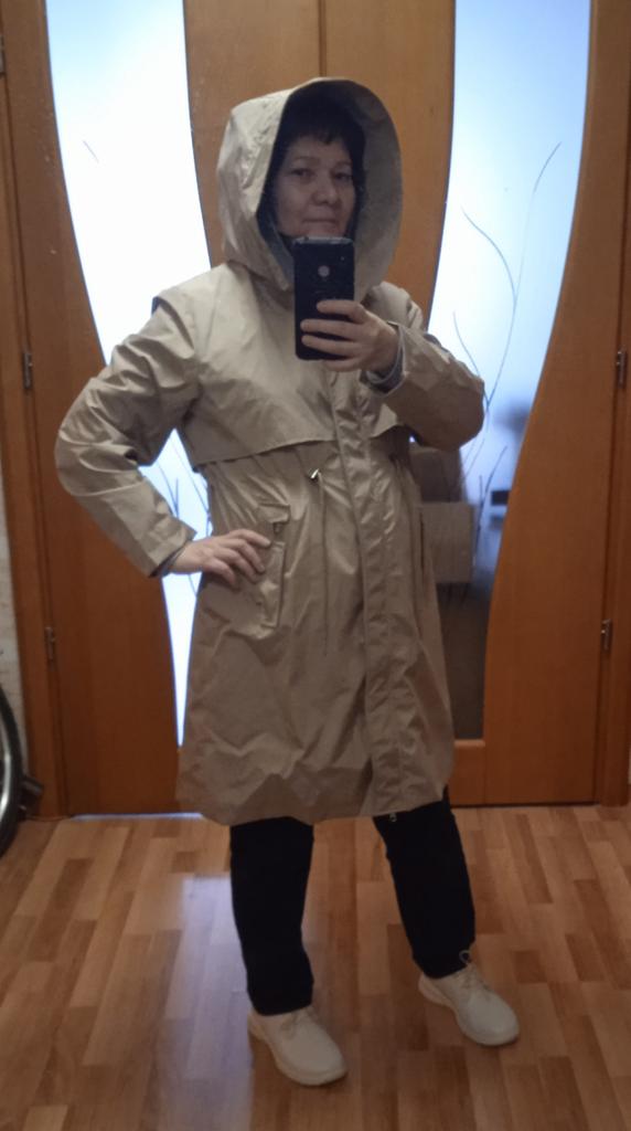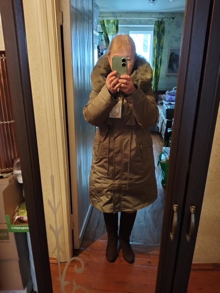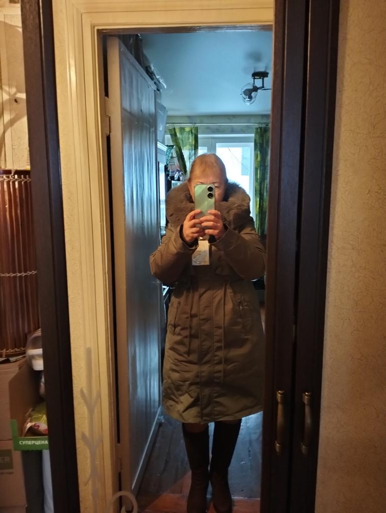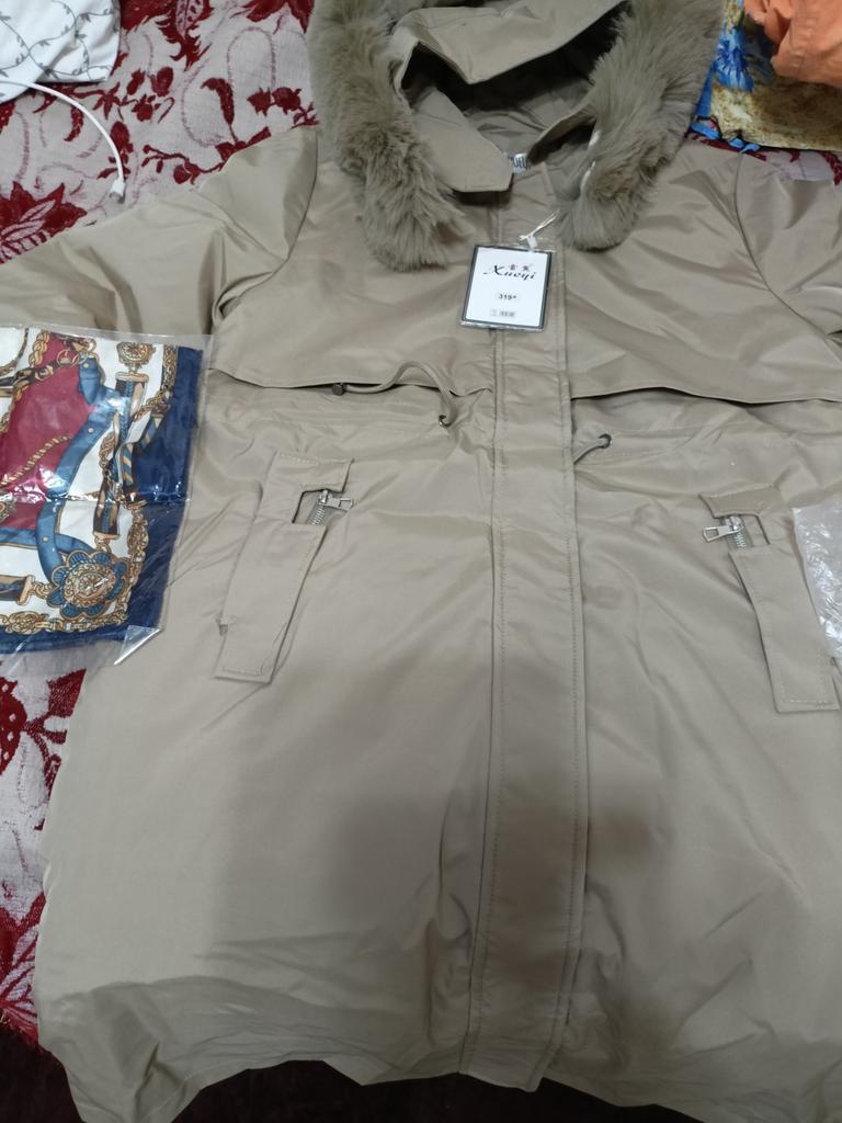 The jacket arrived plus a scarf as a gift. The parcel took less than a month. Everything is clean, without holes or threads and does not smell. It is just right for my 52. ββAbout the jacket: it is very warm and consists of 3 elements: a raincoat + lining + fur. If you remove the top decorative raincoat, the lining is like a quilted jacket. Only synthetic. The lining is above the knee in length, the raincoat is slightly lower. It is very good for frost. I am happy with the purchase. I bought a hat and warm trousers for it. They have not arrived yet.