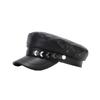 Teens Women Alloy Badge Berets Photography Military Hat Casual Newsboys Cap Adult Sailor Cap PU Hat for Carnival