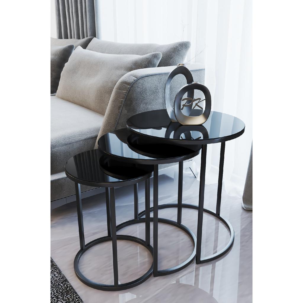 Ceylin 3-seat Nesting Coffee Table Black Metal Leg, Black Shatterproof Glass