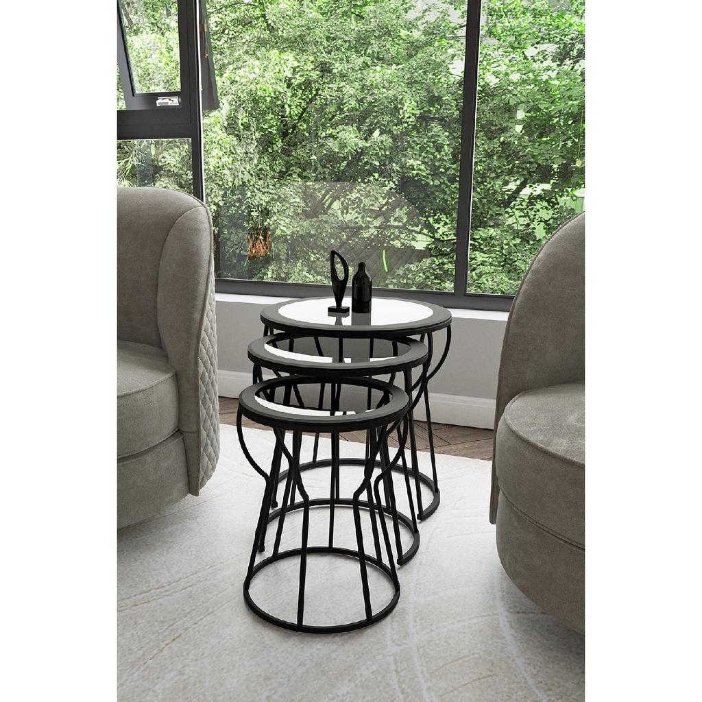C Hourglass 3-piece Nesting Coffee Table Set Black Leg - Smoked Glass MDF