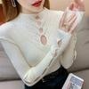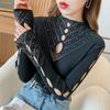 Fashion Long Puff Sleeve Beads Sweater Solid Color Sexy Hollow Out Knitted Tops For Women 2023 Korean Pullover Clothes 29227