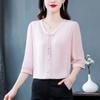 Fashion 3/4 Sleeve Chiffon Shirt Mom Summer New Solid Color Bottoming Top Versatile Age Reducing V-neck Slim Fit Blouse M-5XL