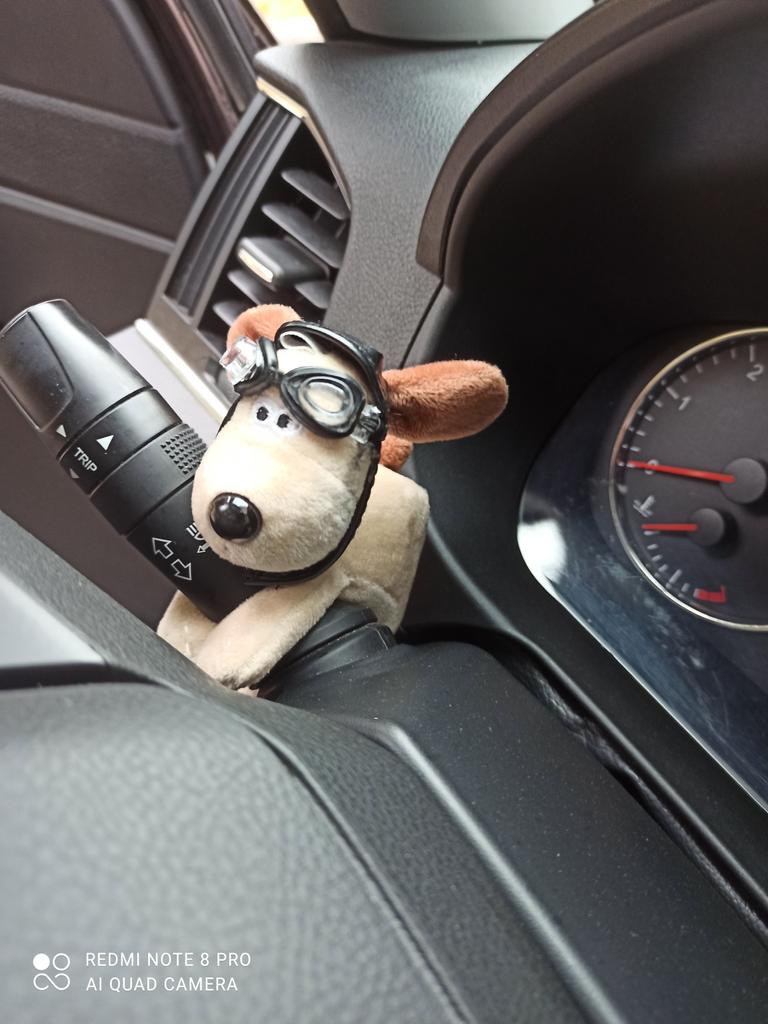 Cute little dog, just right for the car))