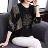 Long Sleeved T-shirt Women Spring Autumn New Loose Fitting Batshirt Mothers Round Collar Bat Sleeve Print Top M-5XL