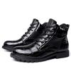 2022 Men Boots Autumn Spring Leather Round Toe Grid Pattern Square Heel Males Shoes Exquisite Fashion Leisure Design Men Boots