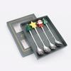 4Pcs Christmas Gift Glod Spoon Fork Set Elk Christmas Tree Decoration Dessert Scoop Fruit Fork Coffee Spoon Cutlery Set