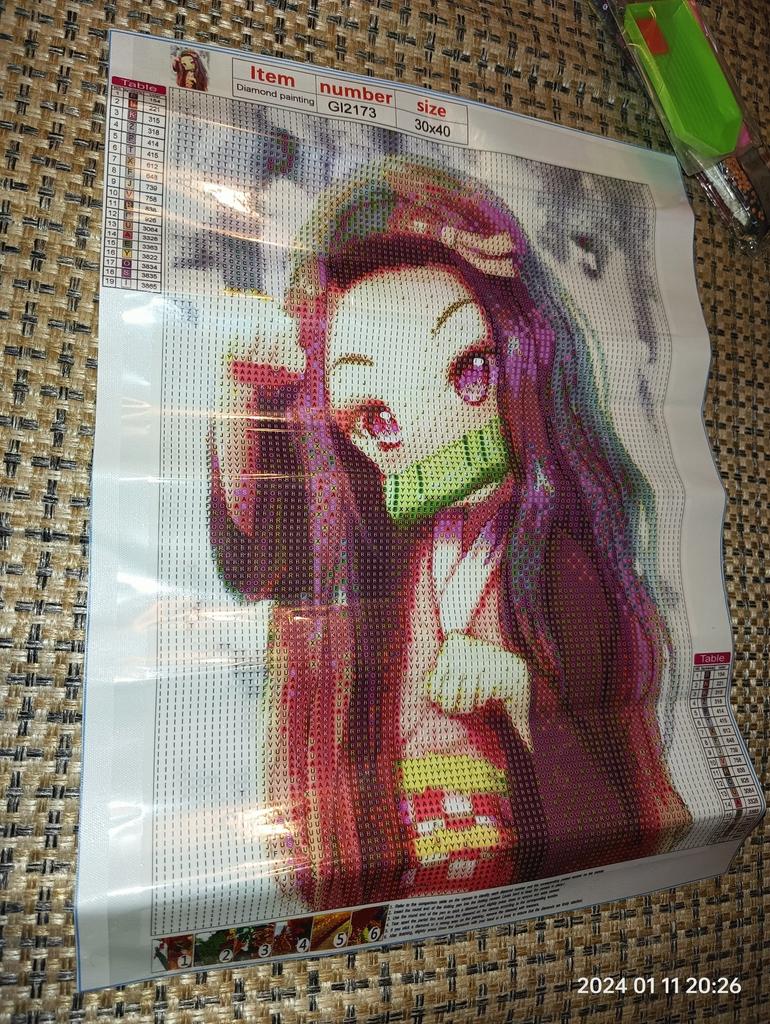 Diamond painting for anime lovers. I know that there are many fans of anime. If you like it, then this picture will bring you joy and satisfaction. I took just such a picture for my friend who is a big fan of anime😉 I already gave her a present and received positive emotions from a friend (giving gifts 🎁 is so nice ♥️) The set includes everything you need to create a picture. Diamonds are bright. Size 30*40 The seller packed the product securely. If you are still looking for a gift for yourself or your loved ones, this diamond painting is a great option.