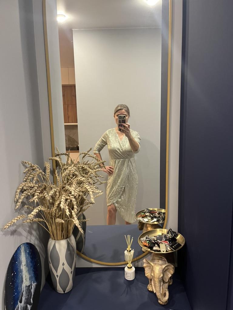 Women Elegant Slim V-neck Long Sleeve Stamping Shiny Party Cocktail Evening Dress