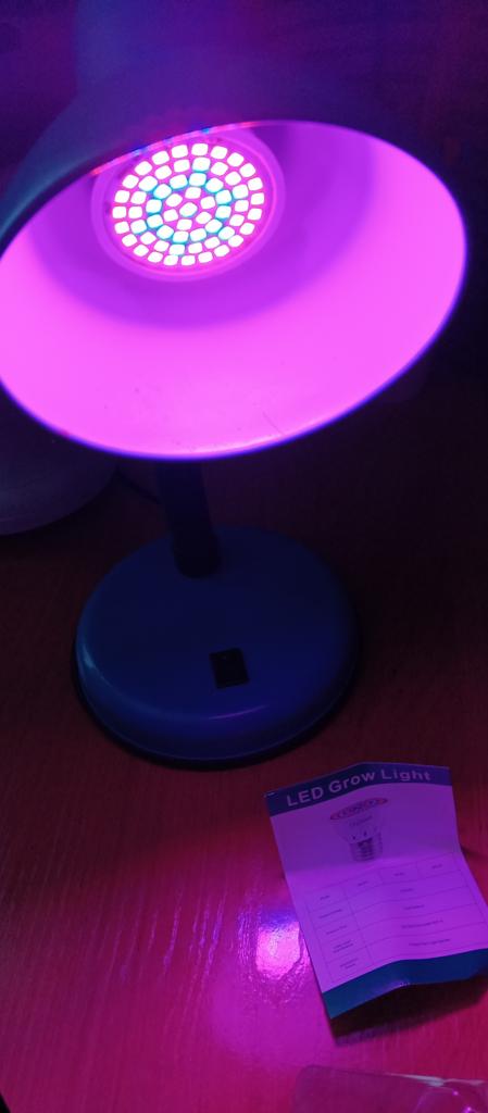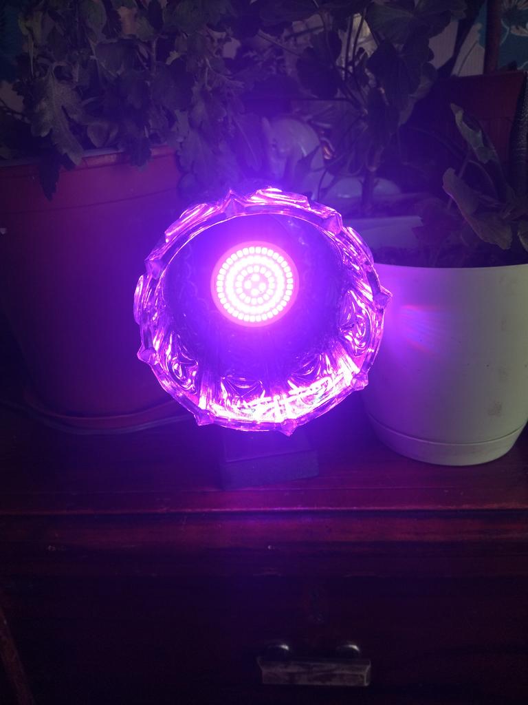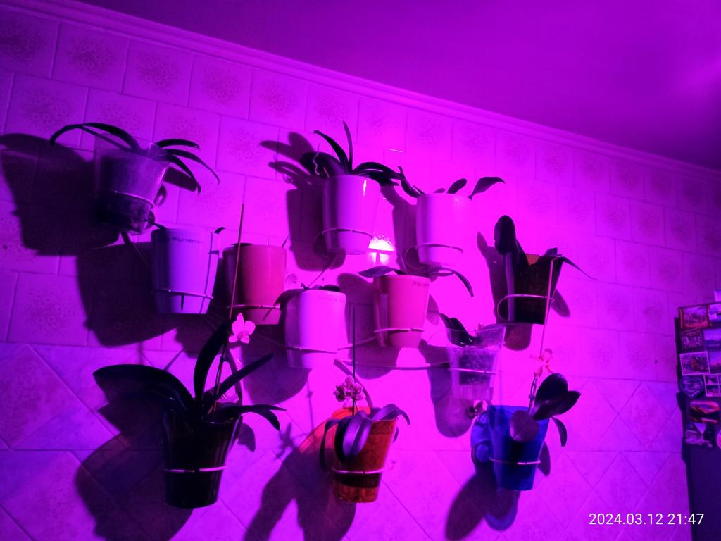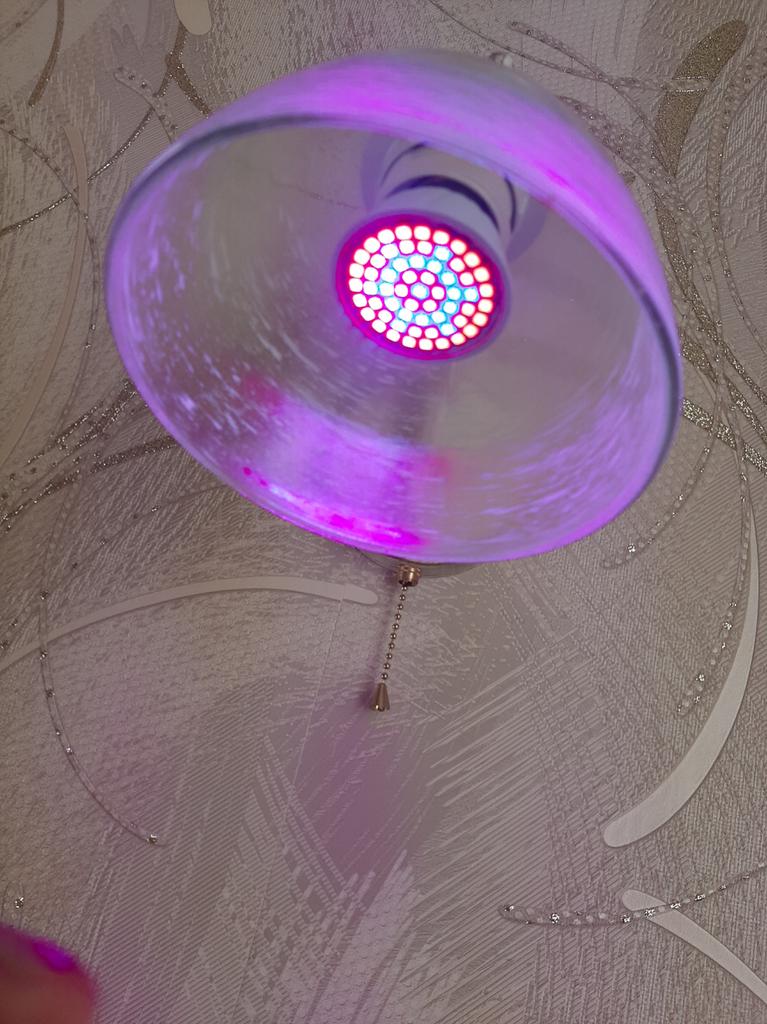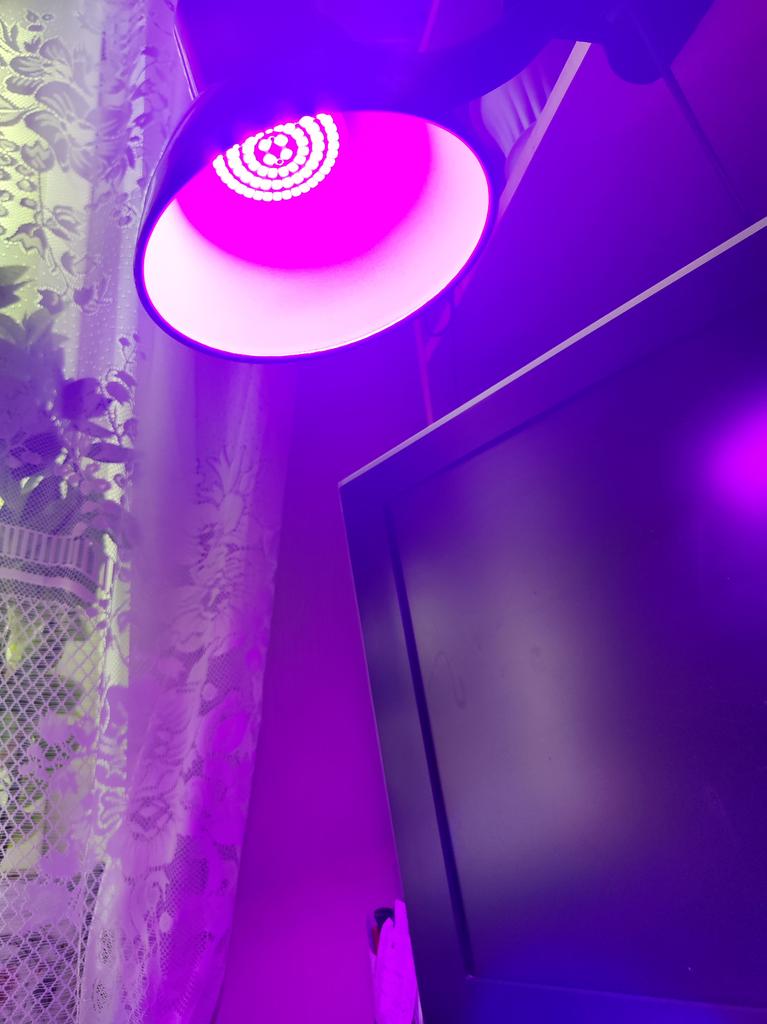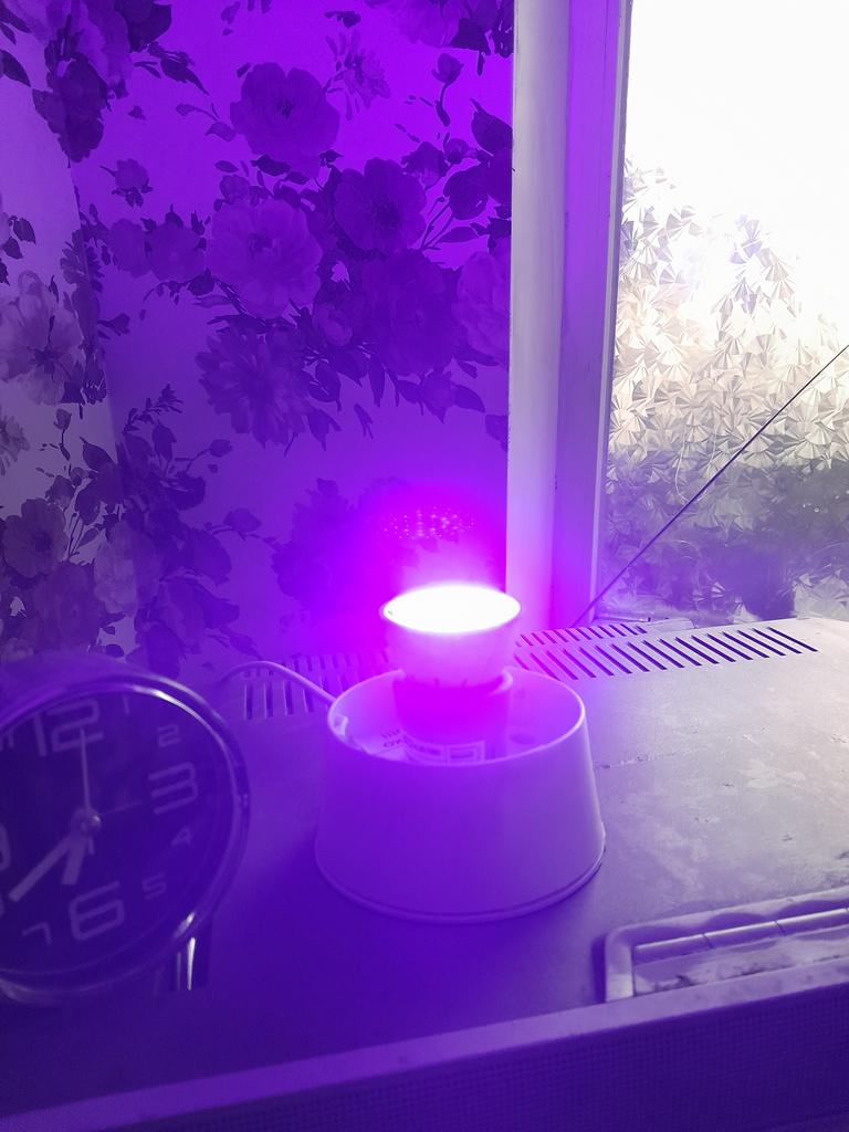 It came in the standard time, about three weeks for the Ukrainian post office. An interesting lamp - the LEDs are arranged in circles, in two colors, red and blue. Each circle is the same color, there are more red diodes. In total, light of a violet hue is emitted. We will try to lighten the plants, they say that this helps the root system to develop. For now we are experimenting with chlorophytums, which did not survive last winter well, and with a half-dead zigocactus purchased at a chain supermarket. So far, not enough time has passed to draw any conclusions about the plants. But the appearance of the room in the evenings has changed a lot ๐๐๐ for the better, it seems to me.
