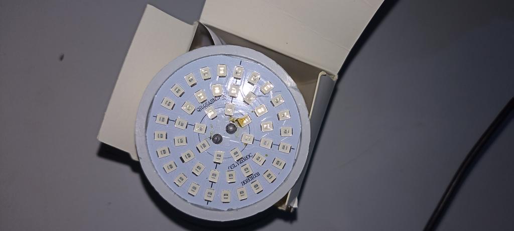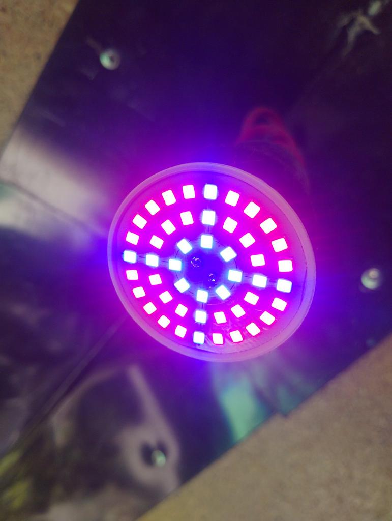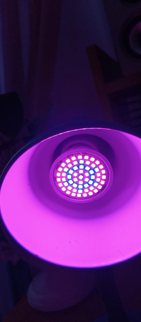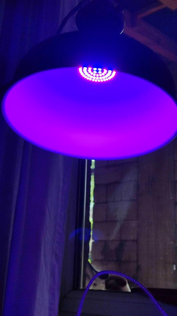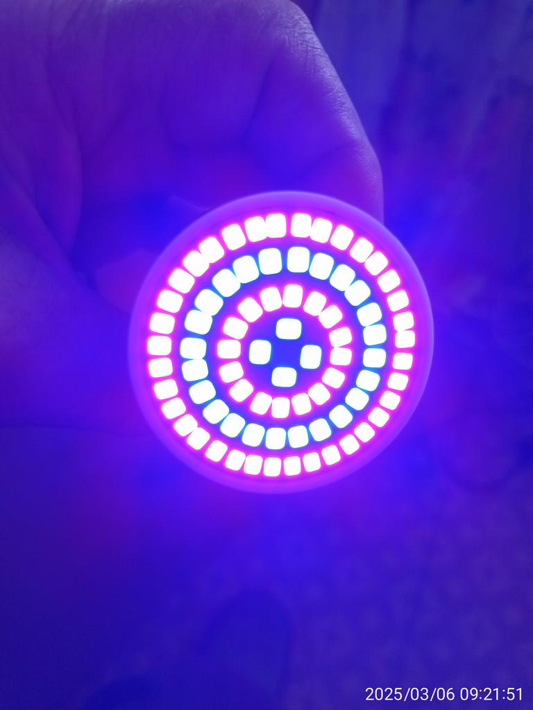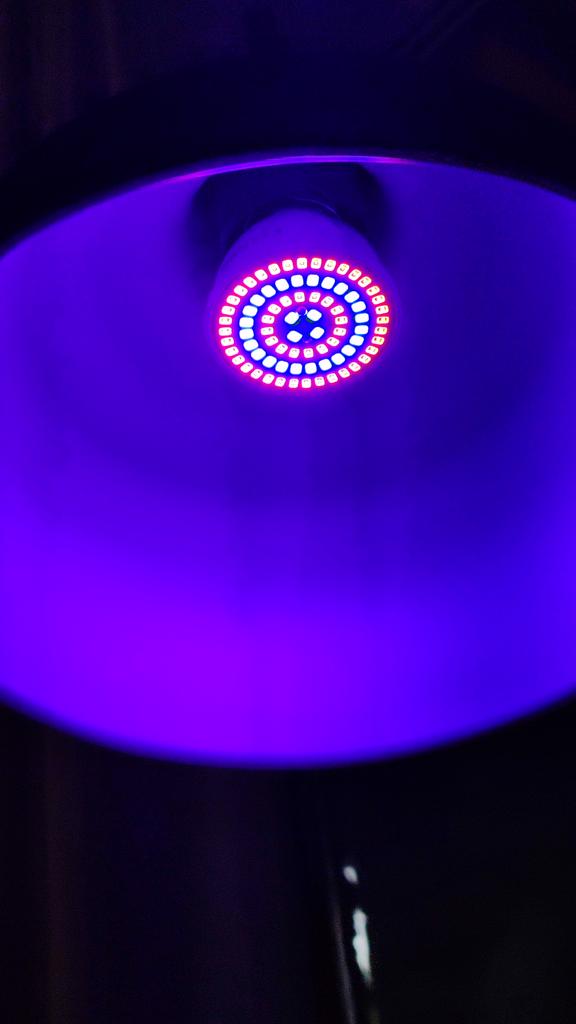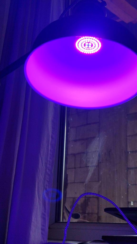 It came in the standard time, about three weeks for the Ukrainian post office. An interesting lamp - the LEDs are arranged in circles, in two colors, red and blue. Each circle is the same color, there are more red diodes. In total, light of a violet hue is emitted. We will try to lighten the plants, they say that this helps the root system to develop. For now we are experimenting with chlorophytums, which did not survive last winter well, and with a half-dead zigocactus purchased at a chain supermarket. So far, not enough time has passed to draw any conclusions about the plants. But the appearance of the room in the evenings has changed a lot ๐๐๐ for the better, it seems to me.