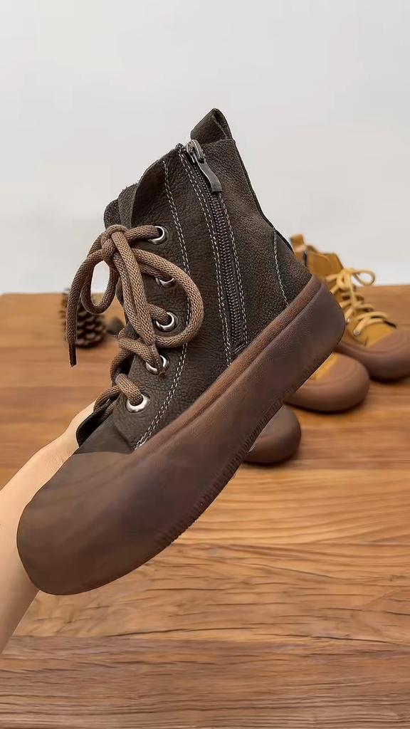 Johnature Vintage Genuine Leather Short Boots With Thick Soles Casual Cowhide Boots Women Flat Platform Shoes