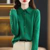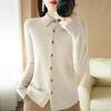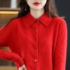 Women's Wool Knit Cardigan Jacket Loose Polo Collar Sweater Outer Solid Color Button Knit Shirt Pullover Korean Autumn Winter T-shirt