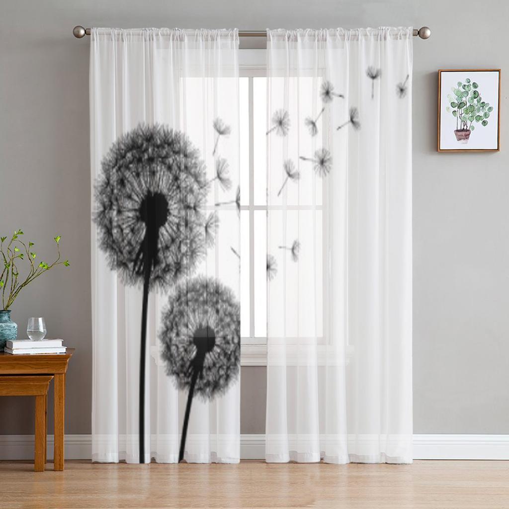 Black Dandelions Sheer Curtains For Living Room Modern Fashion Valance Curtains For Kitchen Tulle Curtains