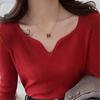 Autumn and Winter Women's Bottoming Shirt V-neck Retro Style Temperament Soft Sweater Bottoming Knitwear Long-sleeved Tops