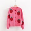 Sweet Aged Strawberry Embroidered Sweater Coat Women Winter Vintage O Neck Contrast Knitted Cardigan Sweater Female Tops