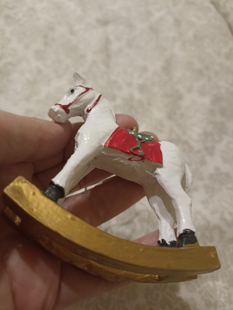 Handcrafted rocking horse ornament made of resin, 100% lead-free.
