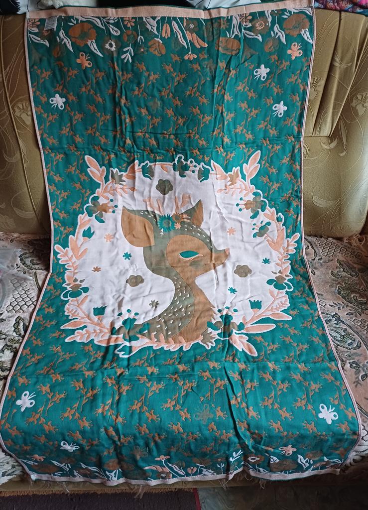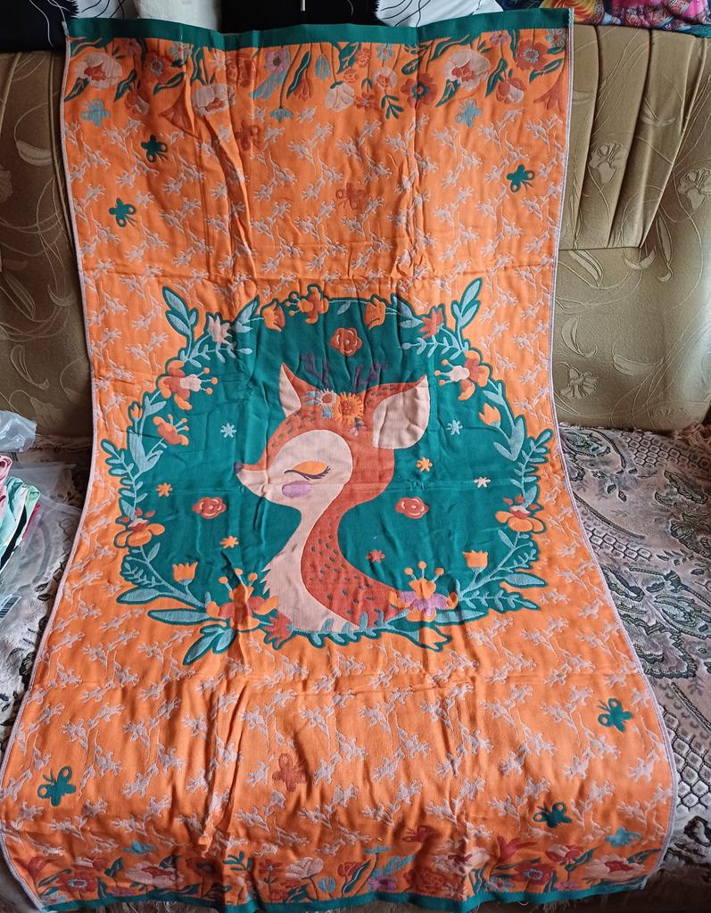 A towel with an interesting, unusual fabric structure... They called it “gauze”, and it’s definitely not a terry towel, as I thought at first... Size 70x140 cm. It’s beautiful, brighter than in the advertising photo, quite thick, at the same time perfectly absorbs moisture - we bought the child, wrapped it, and the moisture was instantly absorbed. In general, I’m pleased with the quality, some new sensations, I’ve never had such towels before. I recommend experiencing similar feelings, trying out these wonderful bath towels for yourself - buy without hesitation, the choice of patterns and colors is huge!