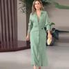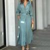 Elegant Blue Dress Midi 2023 Spring Summer Long Sleeve Single Breasted Female Dresses Commuting Casual Lady Robe