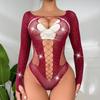 Women Diamond Fishing Net Stocking Babydoll Lingerie Long Sleeve Sleepwear Bodysuit Black Lingerie Ladies Jumpsuit