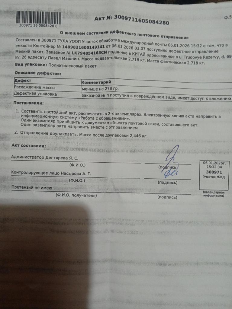I received the order, everything is in perfect order.