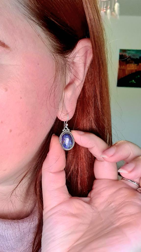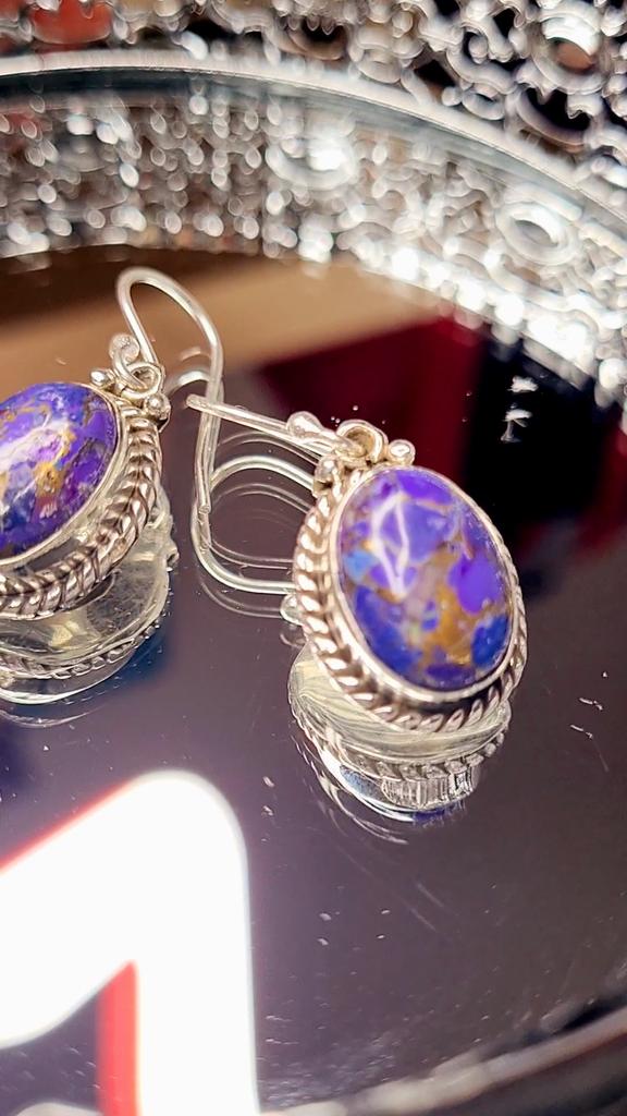 Natural Purple Copper Turquoise Earrings, Handmade Silver Earring, 925 Sterling Silver, Teardrop Turquoise Earrings, Dangle & Drop Earrings