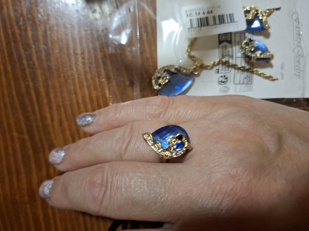 Women Rhinestone Peacock Water Drop Pendant Necklace Earrings Ring Jewelry Set