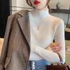 Elegant Half High Collar Knitted Sweater Vintage Long Sleeve Bottoming Women Pullover Tops Autumn Winter White Jumper Sweaters 22848