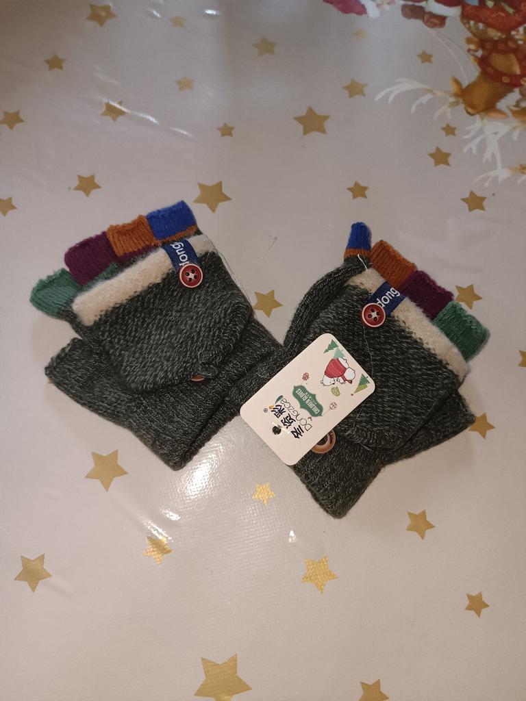 Half Finger Flip Kids Gloves Jacquard Color Matching Autumn Winter Warm Gloves for Children Student Writing Baby Gloves
